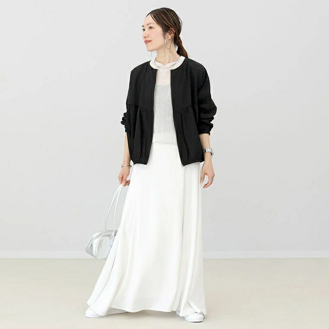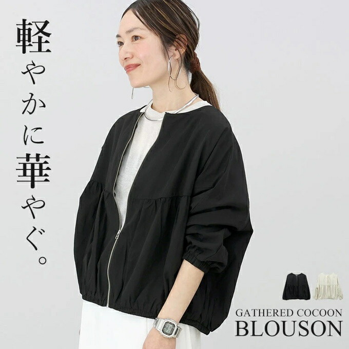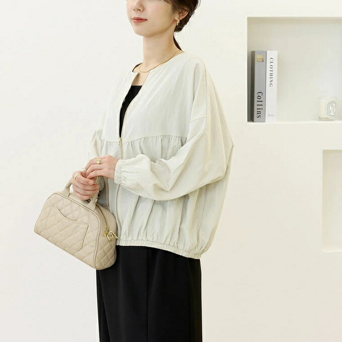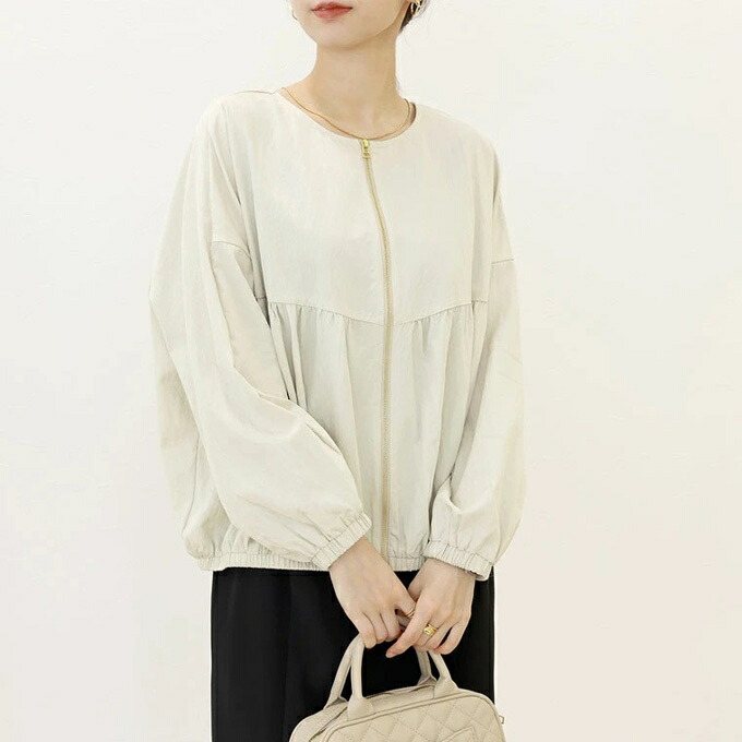 ノーカラー ジップ ジャケット ブルゾ レディースファッション 豊富 オフベージュ ブラック