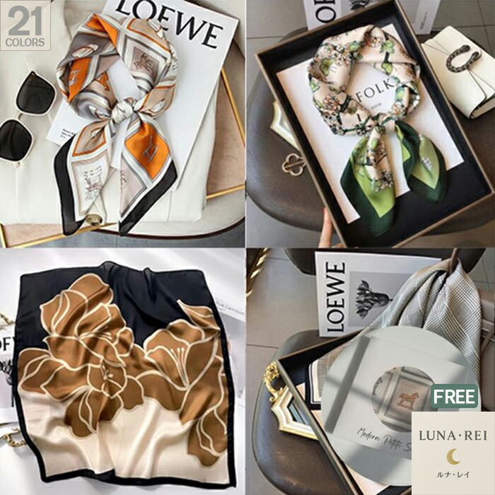 シルク風スカーフ|おしゃれ バンダナ ギフト 韓国風 バッグチャーム 春夏秋スカーフ ヘアアレンジ