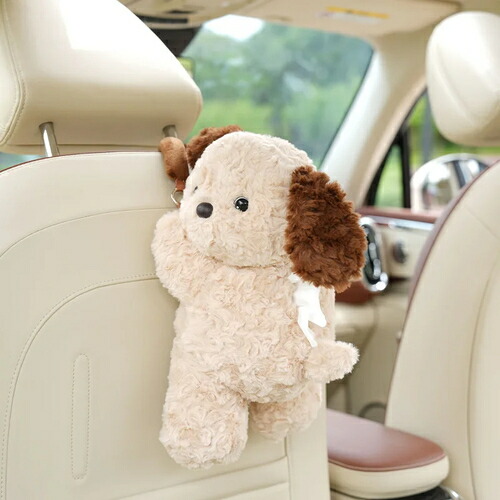 もこもこふわふわ♪ かわいい犬のぬいぐるみティッシュケースで、車内をおしゃれに飾る簡単取り付けのカーアクセサリー!