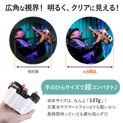 双眼鏡 コンパクト 超軽量 10倍拡大 ホワイト ピンク ブラック