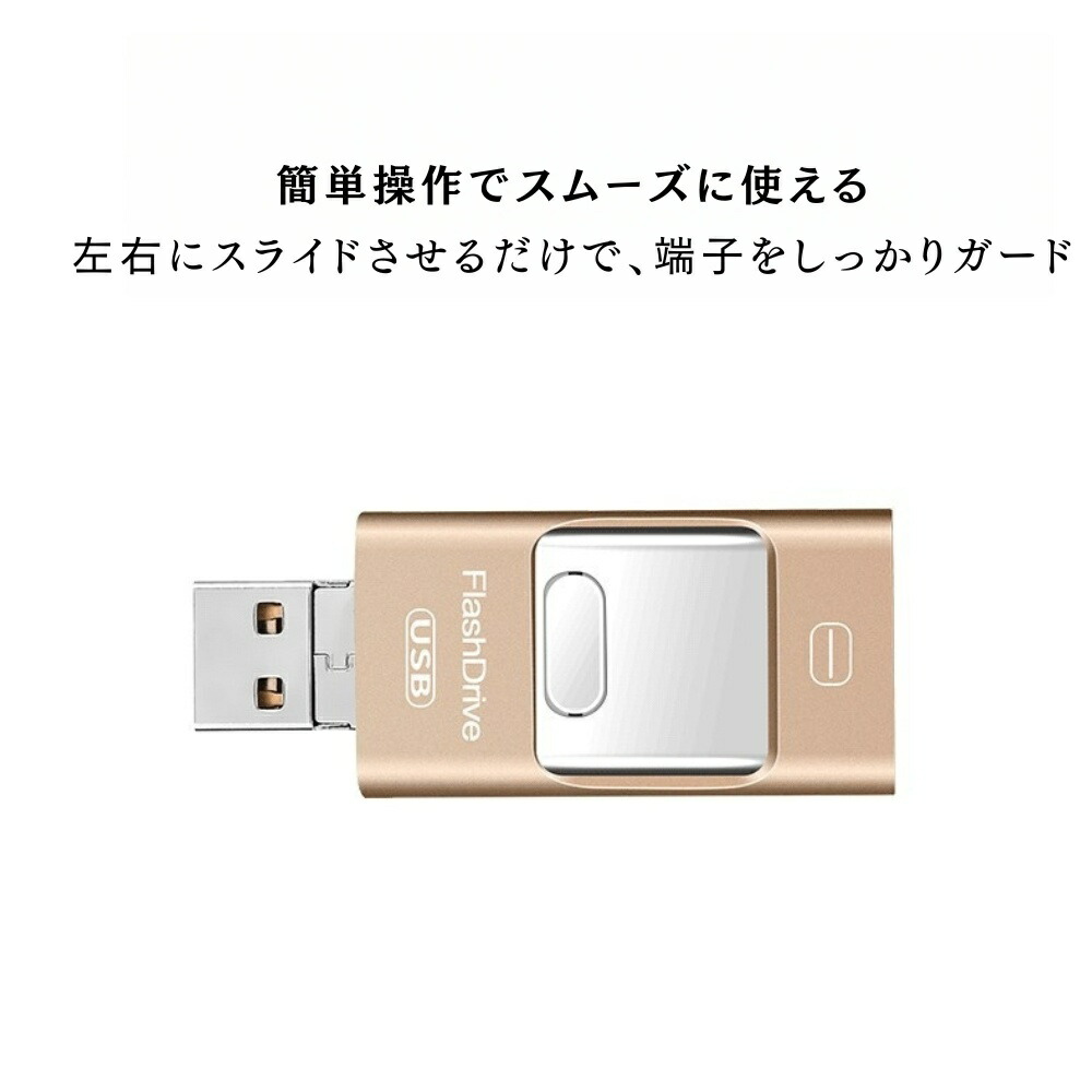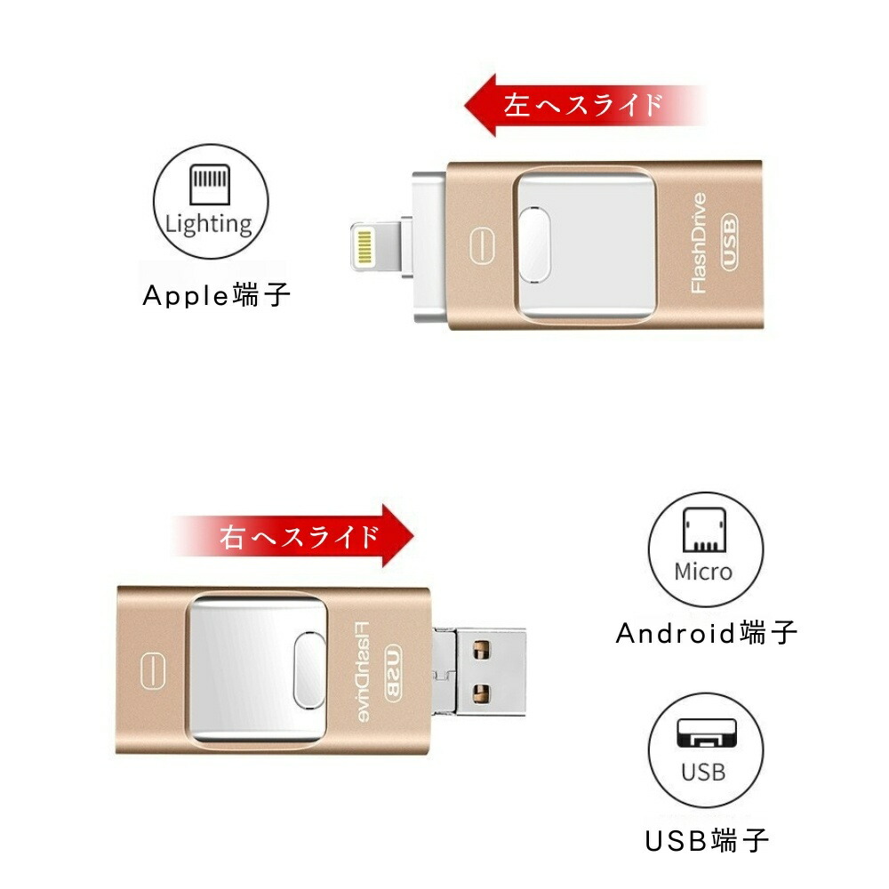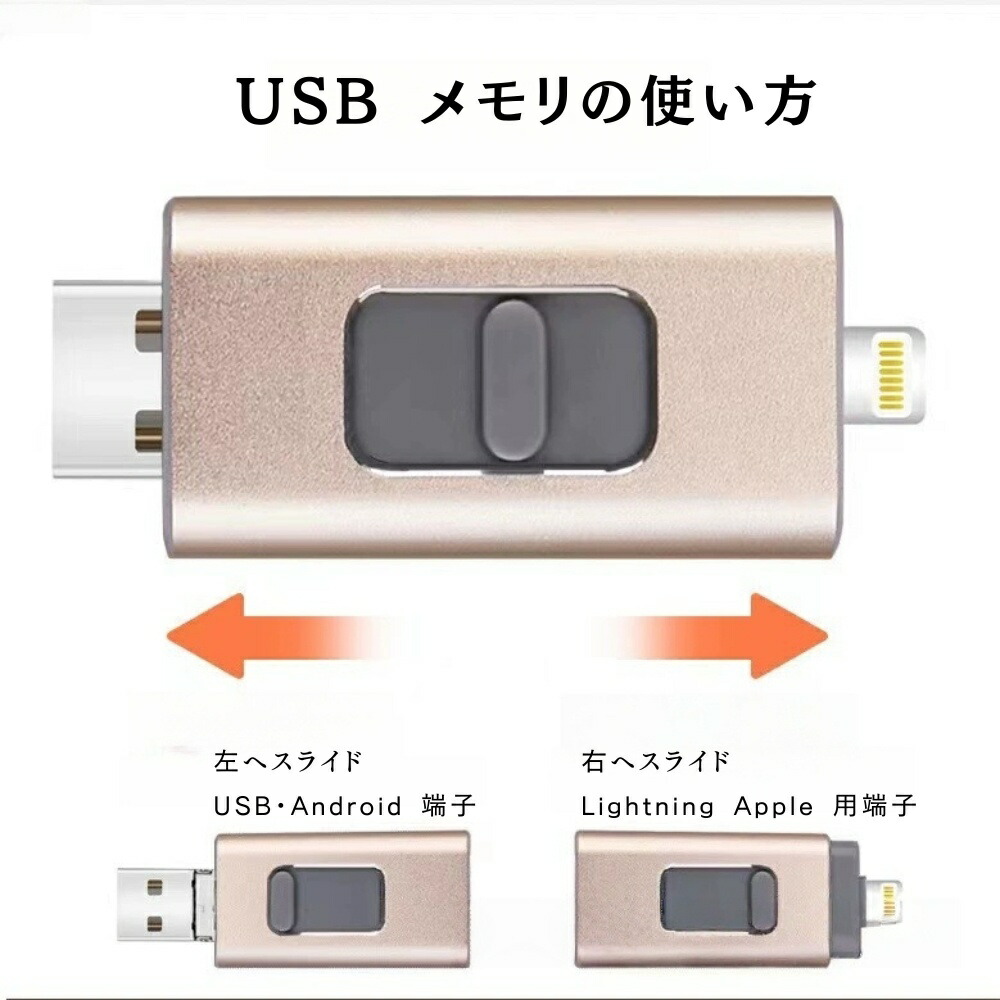 4in1 USB メモリ 金属スライド ピンク ゴールド ブラック シルバー 4GB 8GB 16GB 32GB 64GB 128GB 256GB 512GB 1T