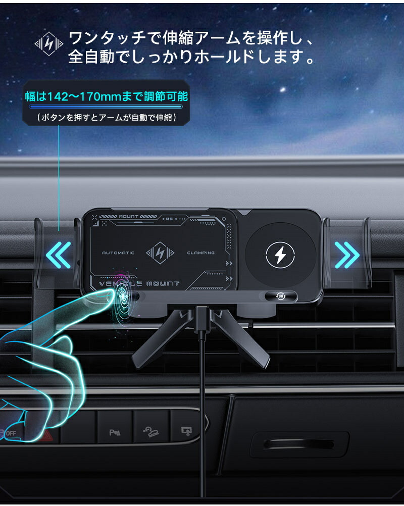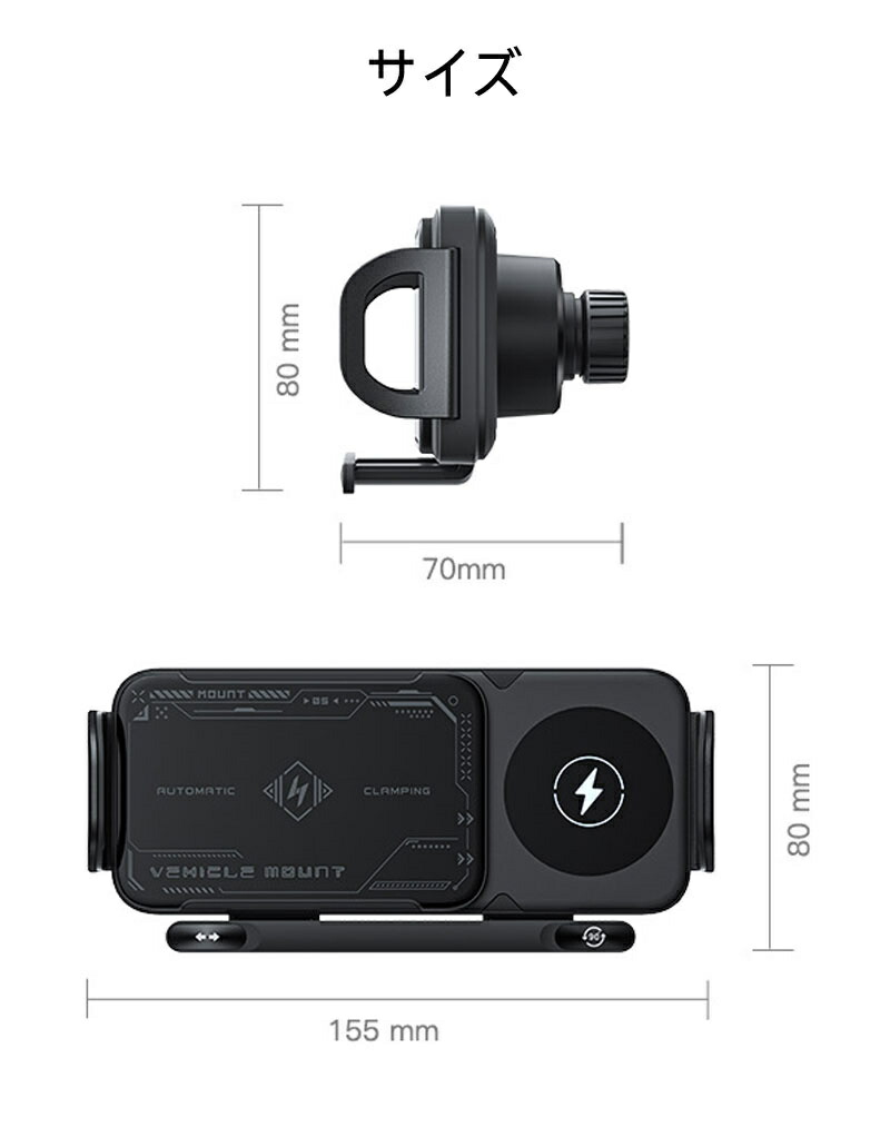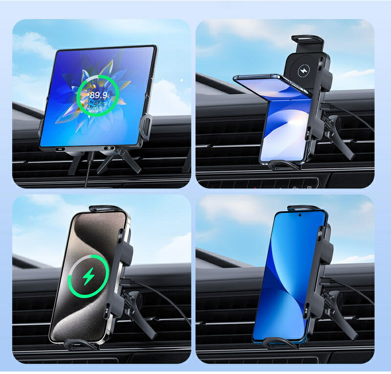 折りたたみスマホ 車載ホルダー ワイヤ ブラック シルバー