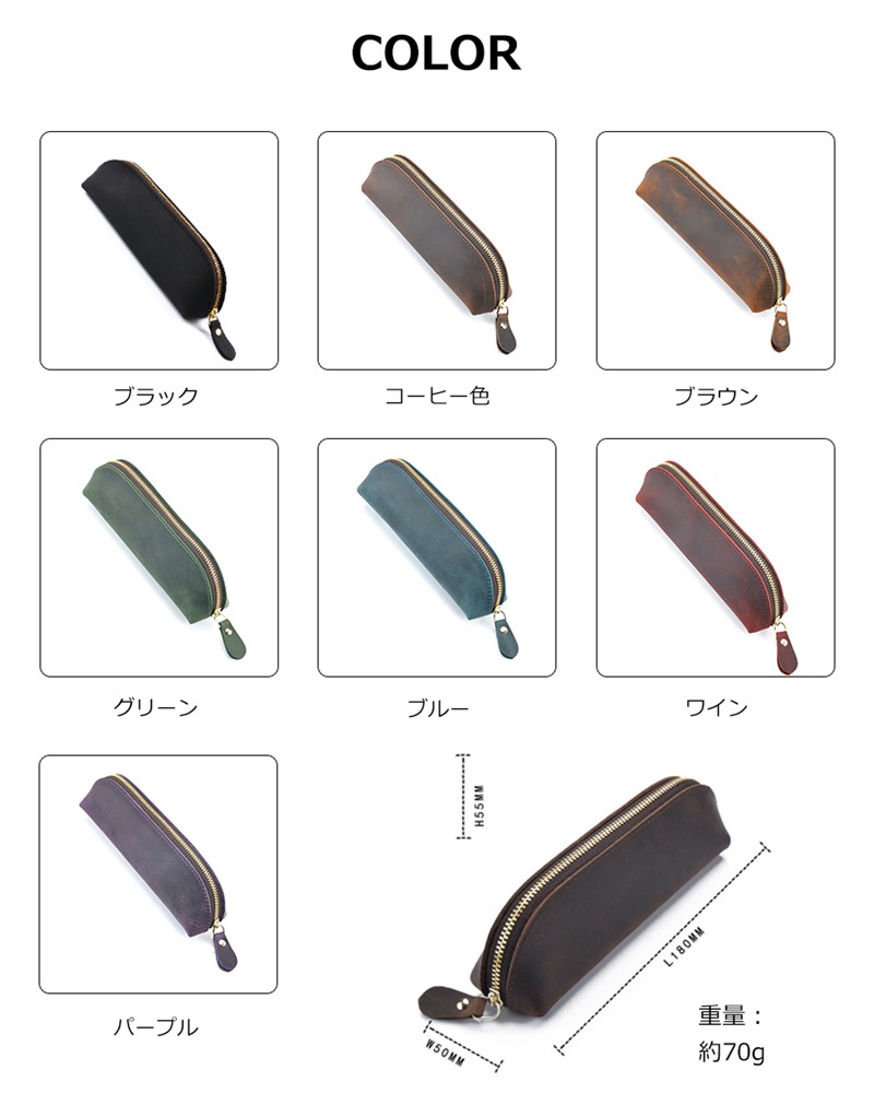 本革 ペンケース 筆箱 全7色 メンズ 日用品雑貨 文房具 手芸 人気 ブラック コーヒー色 ブラウン グリーン ブルー ワイン パープル