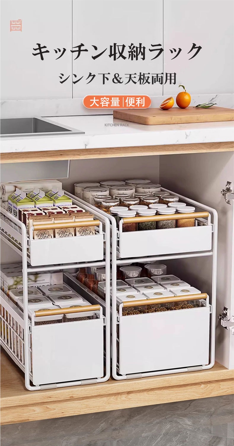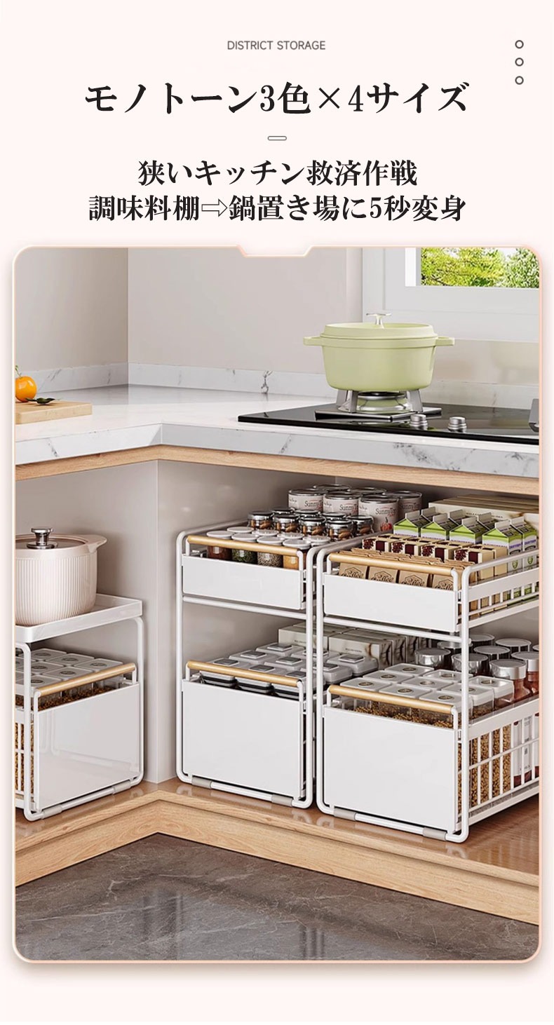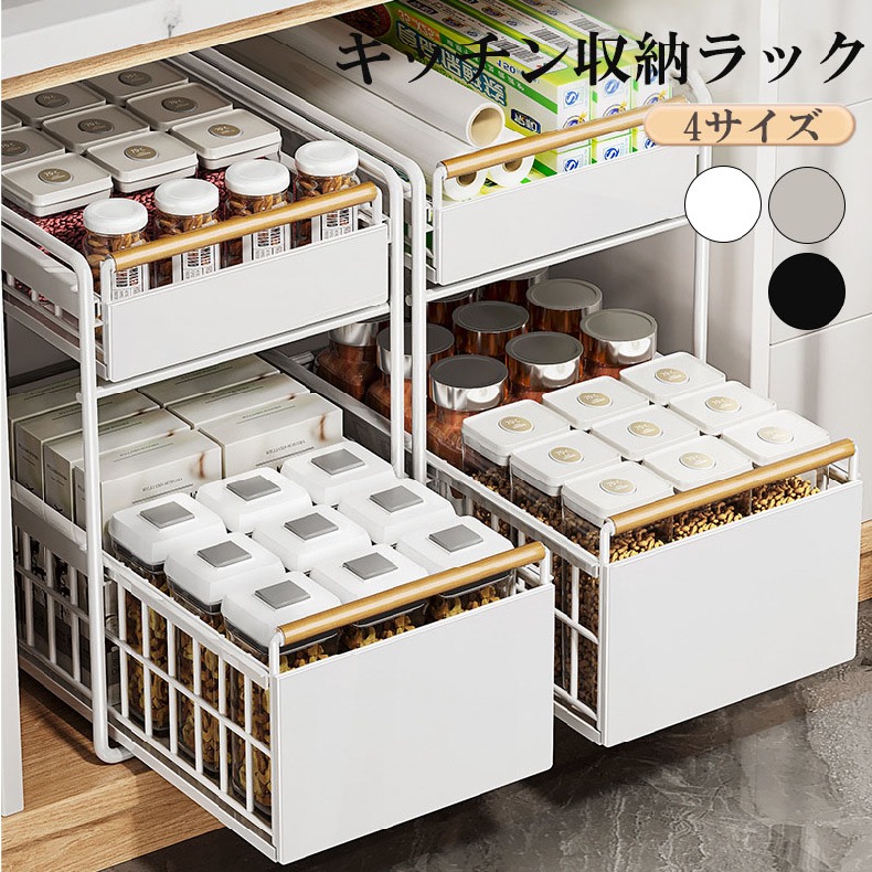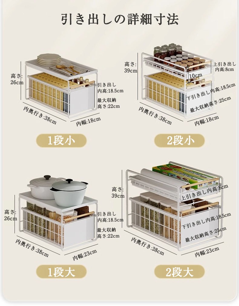スライドラック 伸縮ラック 洗面台下 ホワイト ブラック 1段小 1段大 2段小 2段大