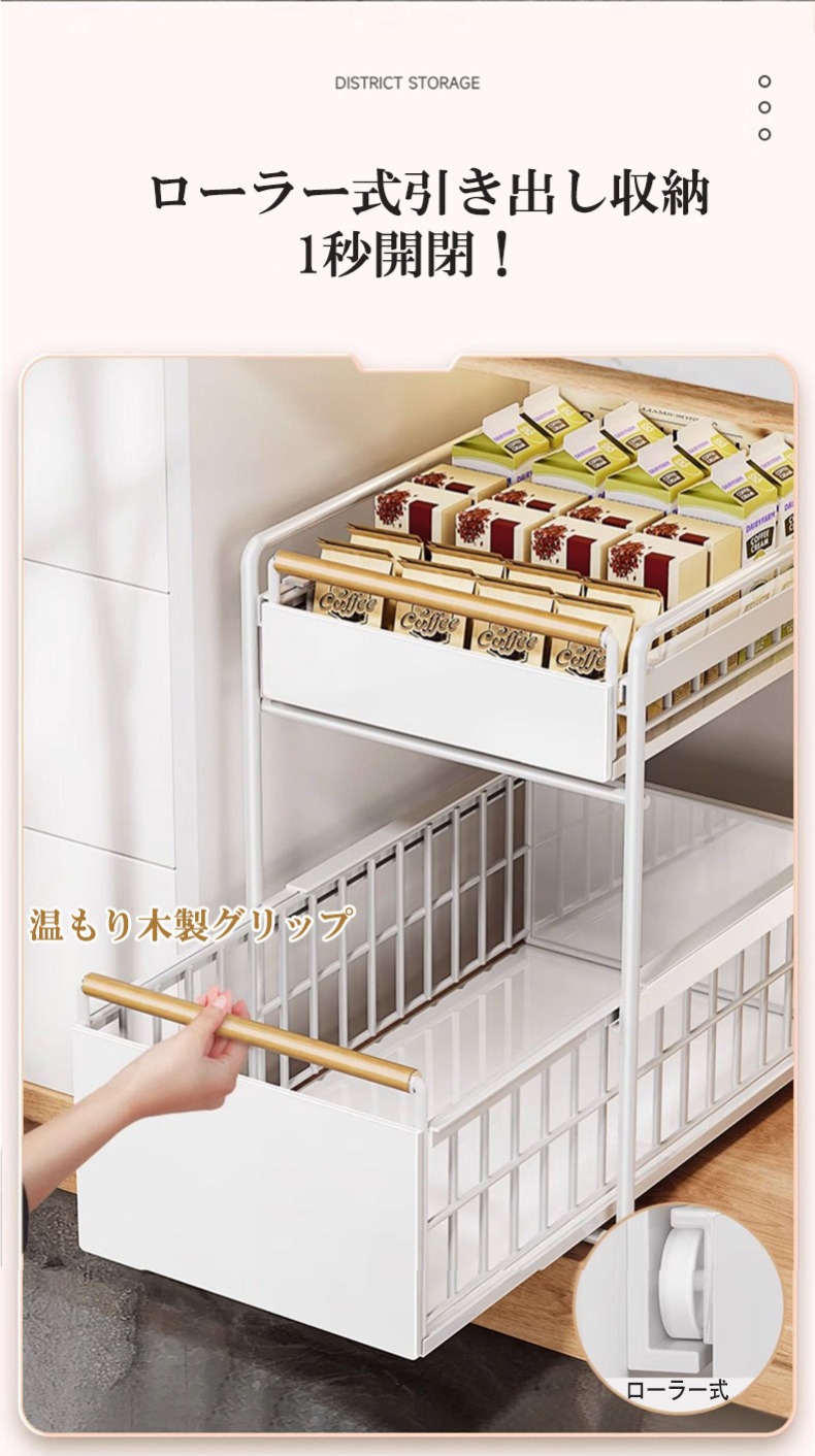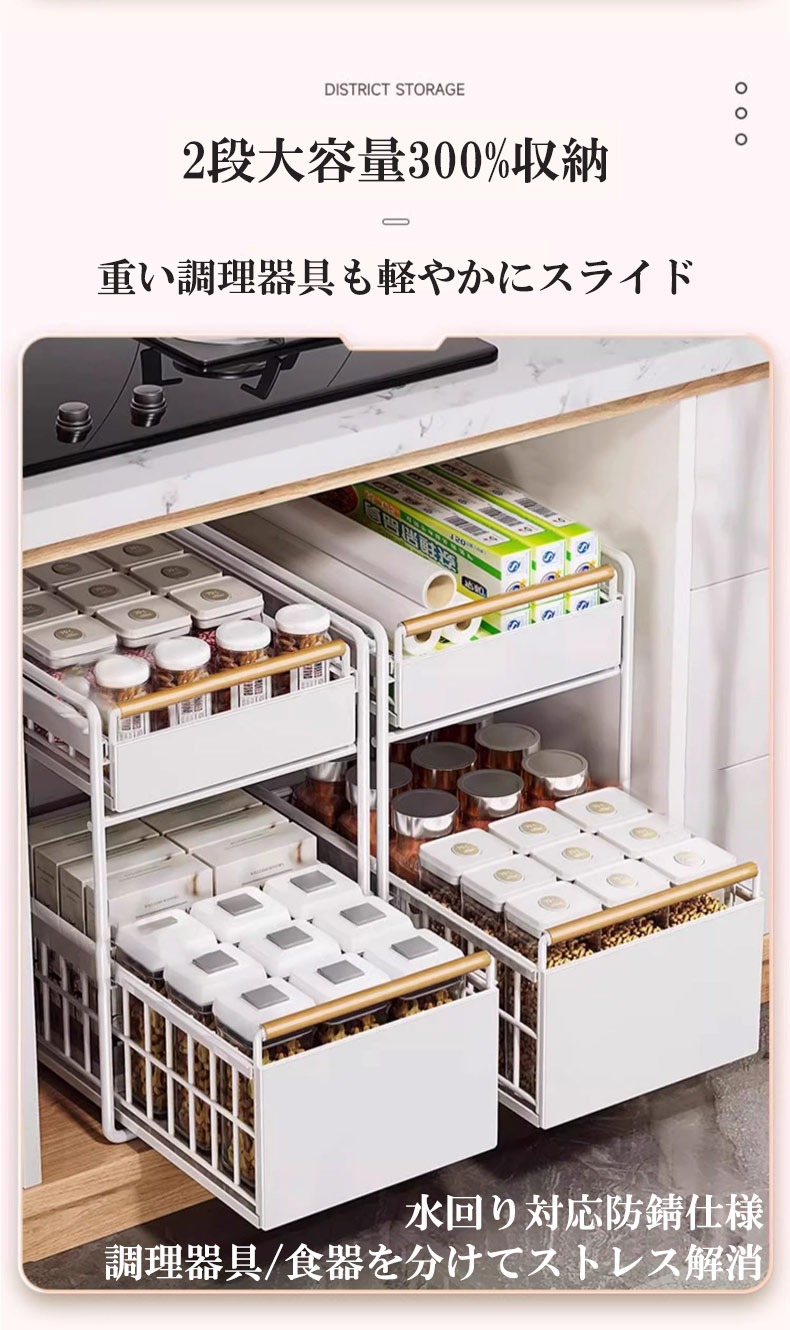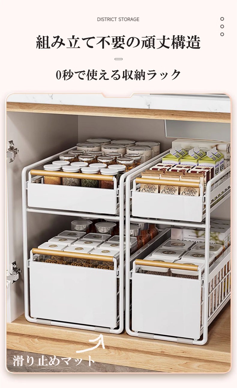スライドラック 伸縮ラック 洗面台下 ホワイト ブラック 1段小 1段大 2段小 2段大