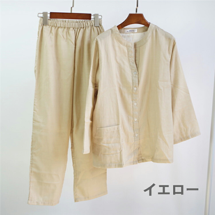 2重ガーゼ パジャマ レディース 秋 インナー 下着 ナイトウエア 新登場! ピンク ブルー イエロー S M L XL