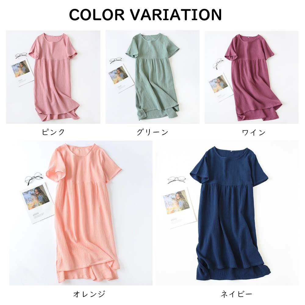 ダブルガーゼ パジャマ ワンピース ネ ピンク グリーン ネイビー ワイン M L LL