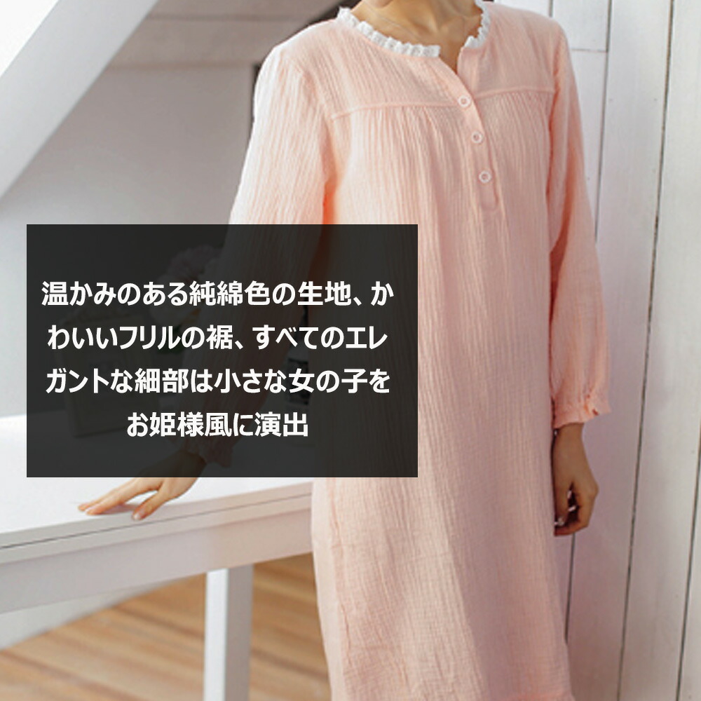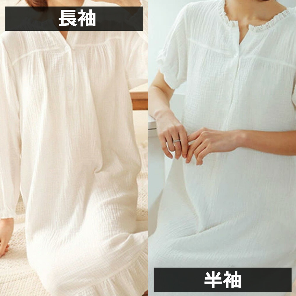 ワンピース ルームウェア 長袖 姫系 半袖ホワイト 長袖ホワイト 長袖ピンク M L XL