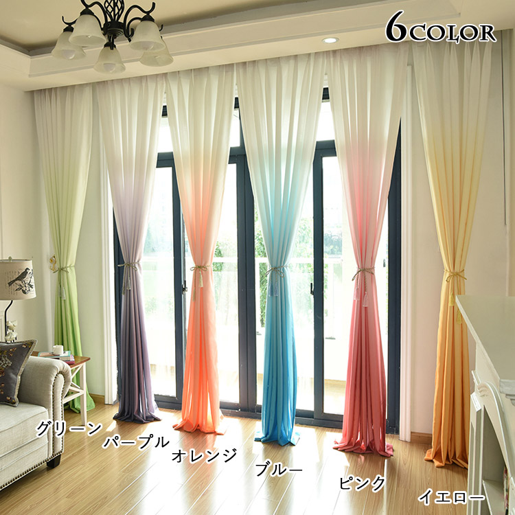 カーテン レース ドレープ 二重カーテ オレンジ イエロー グリーン ピンク ブルー 30cm~75cm 76cm~100cm 101cm~200cm 201cm~300cm
