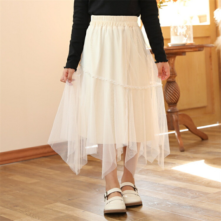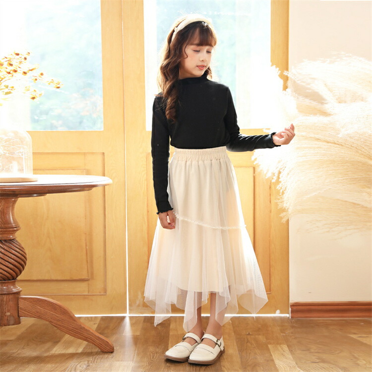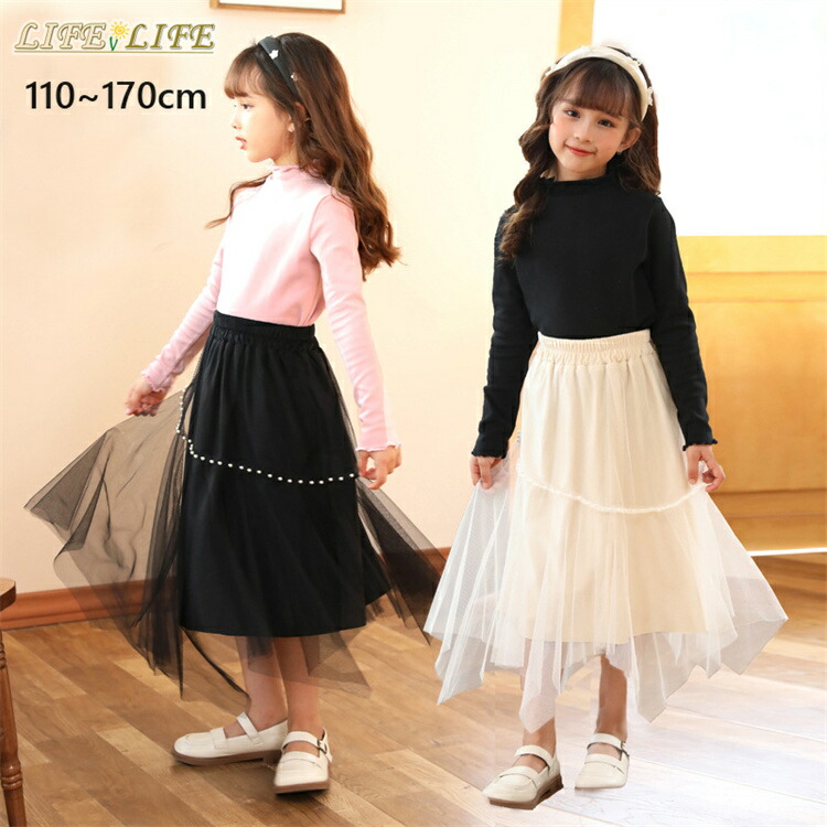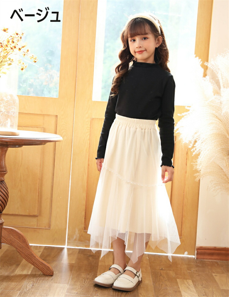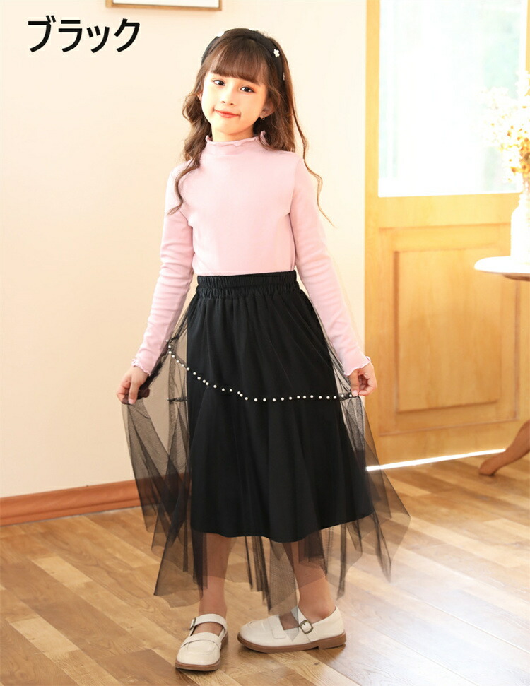 チュールスカート キッズ ロングスカー キッズ ベビー マタニティ 豊富 ブラック ベージュ 120 130 140 150 160