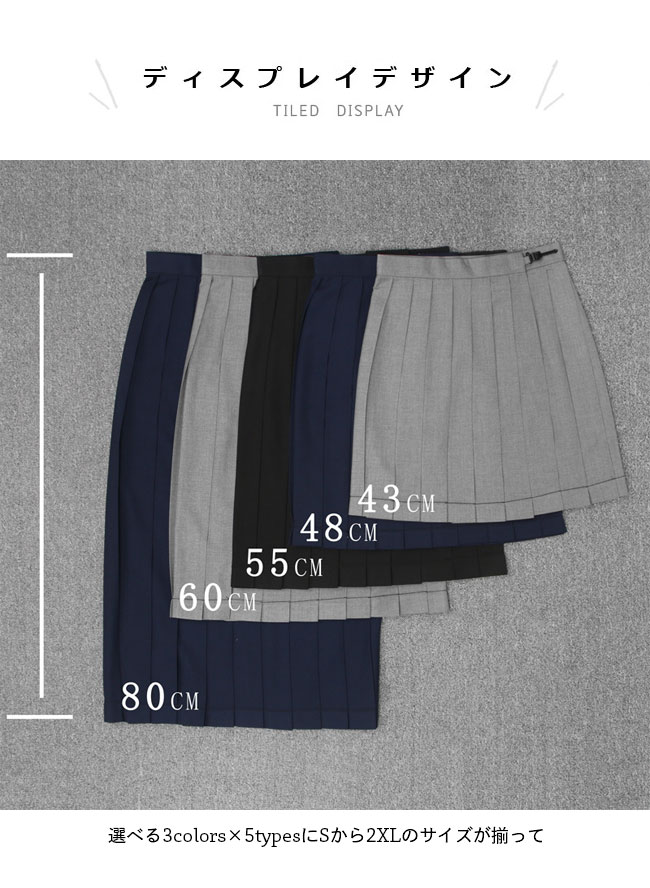 スクールスカート ブラック ネイビー 学生服 スカート 通販 S M L XL 2XL グレー(43cm) ブラック(43cm) ネイビー(43cm) グレー(48cm) ブラック(48cm) ネイビー(48cm) グレー(55cm) ブラック(55cm) ネイビー(55cm) グレー(60cm) ブラック(60cm) ネイビー(60cm) グレー(80cm) ブラック(80cm) ネイビー(80cm)