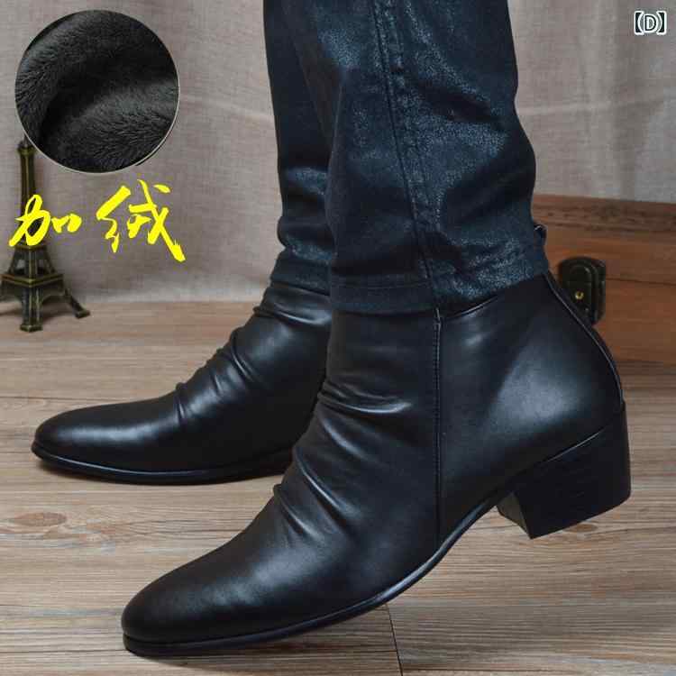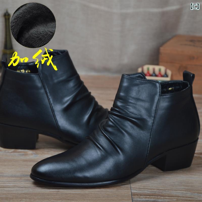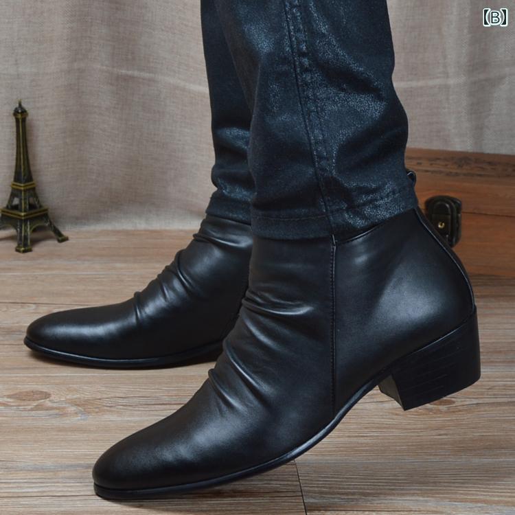 ブーツ メンズ ポインテッドトゥ 靴 韓国 レザー ショート ハイカット ブラック体操シューズ 英国風