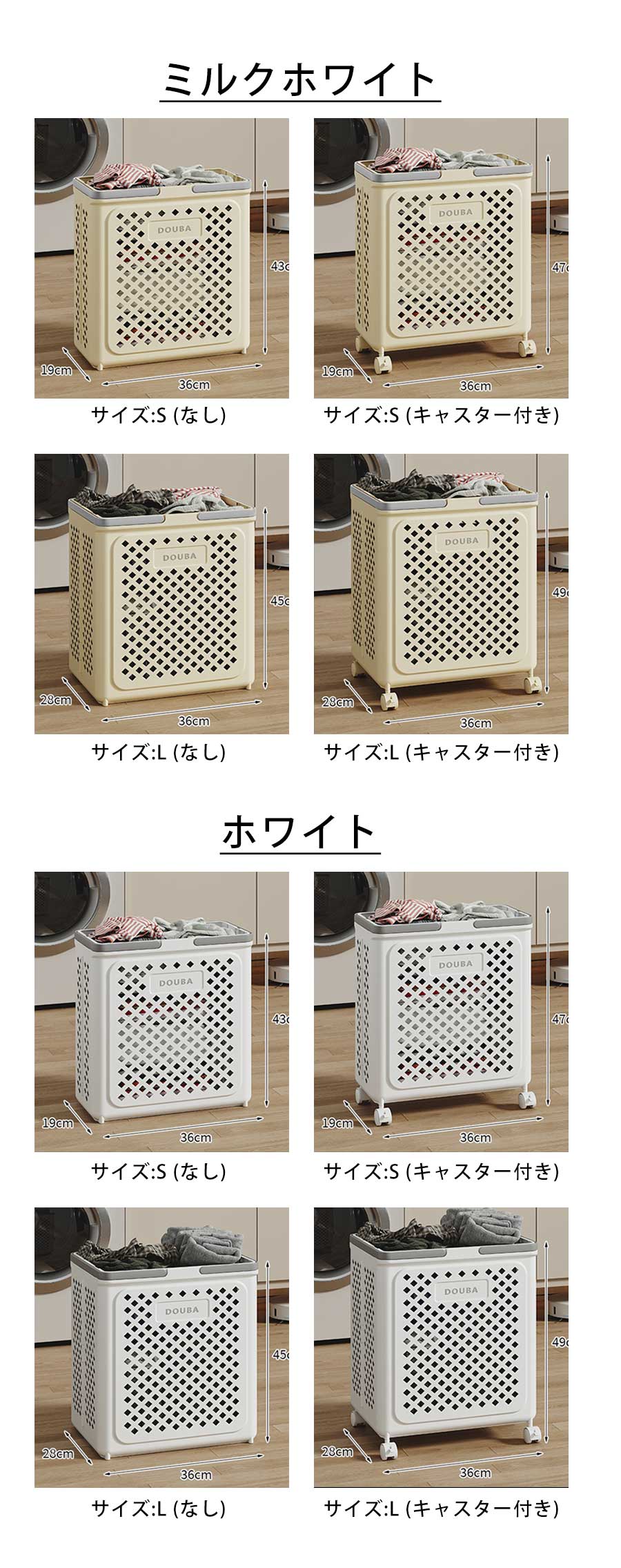 ランドリーバスケット 折りたたみ キャ ホワイト ミルクホワイト S L