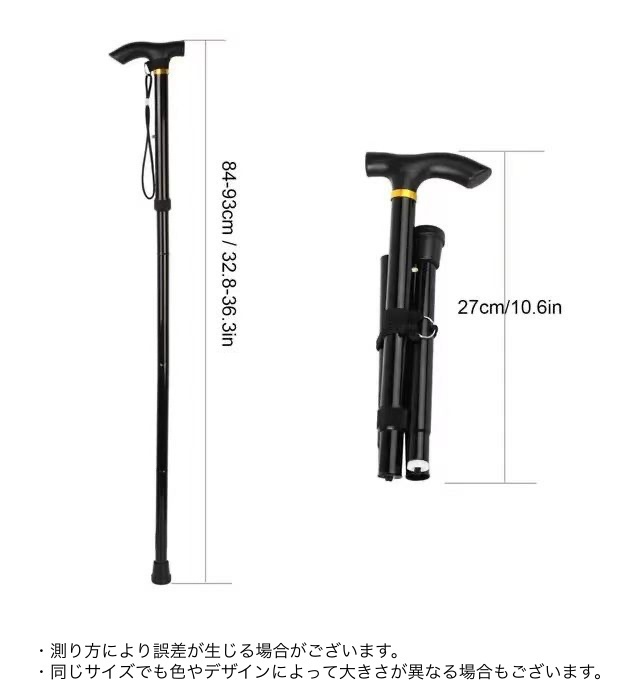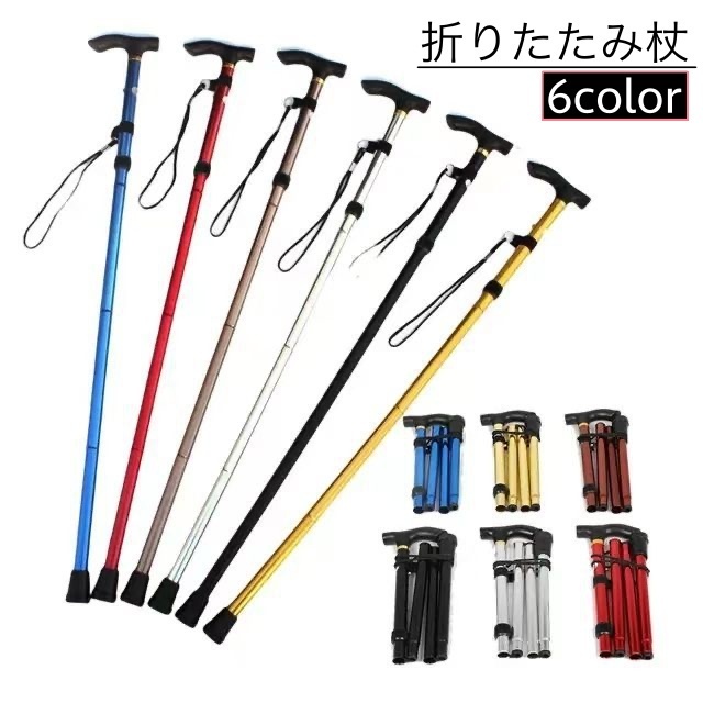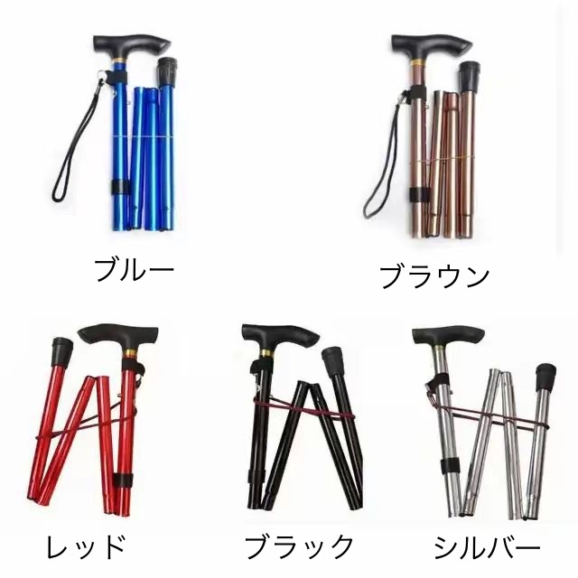 杖 ステッキ 折りたたみ 長さ調節可能 ブラック レッド ブルー シルバー ブラウン ゴールド