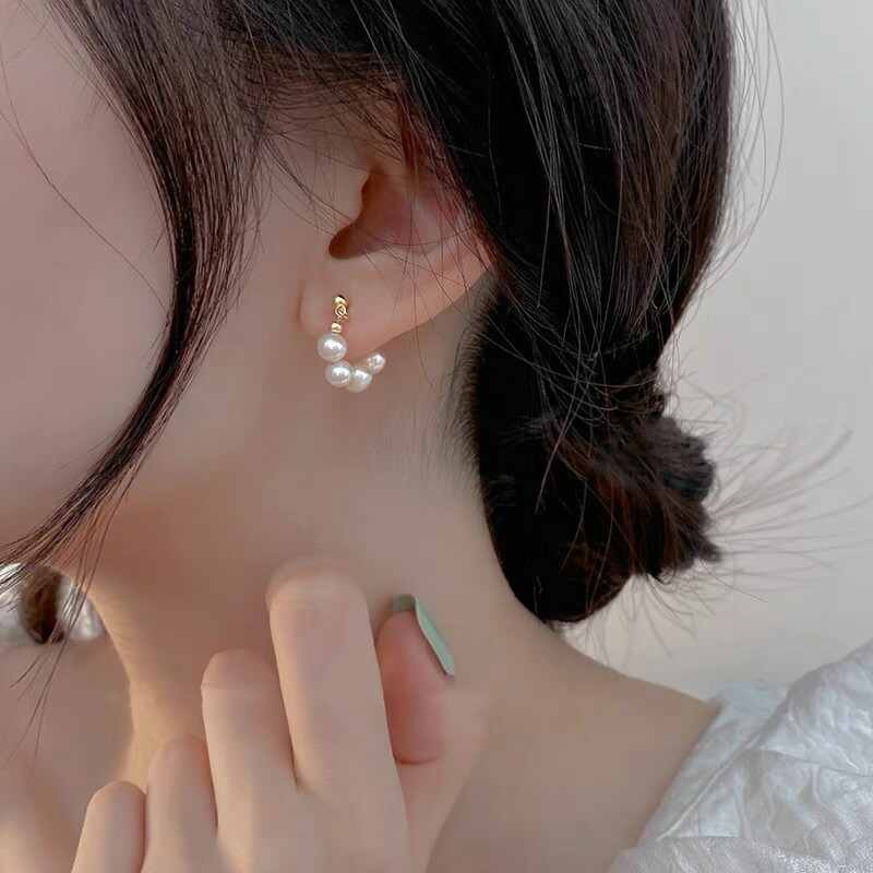 ・小粒の淡水パールが並ぶフープピアス。1粒1粒の形が異なり同じものはないオンリーワンピアス☆