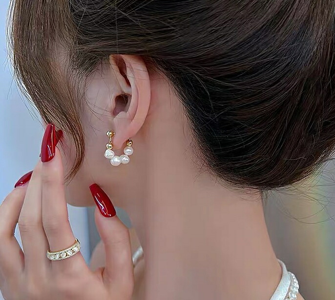 ・パールに程よい光沢感があり美しい存在感を楽しめる、フープ部分はシンプルなチェーンになっており、きれいめに合わせやすくなっております。