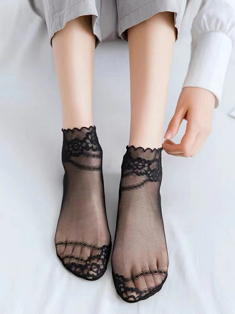 レース ソックス レディース シースル レディース 靴下 レッグウェア 靴下 早い者勝ち 黒 ライトグレー ホワイト ベージュ ピンク