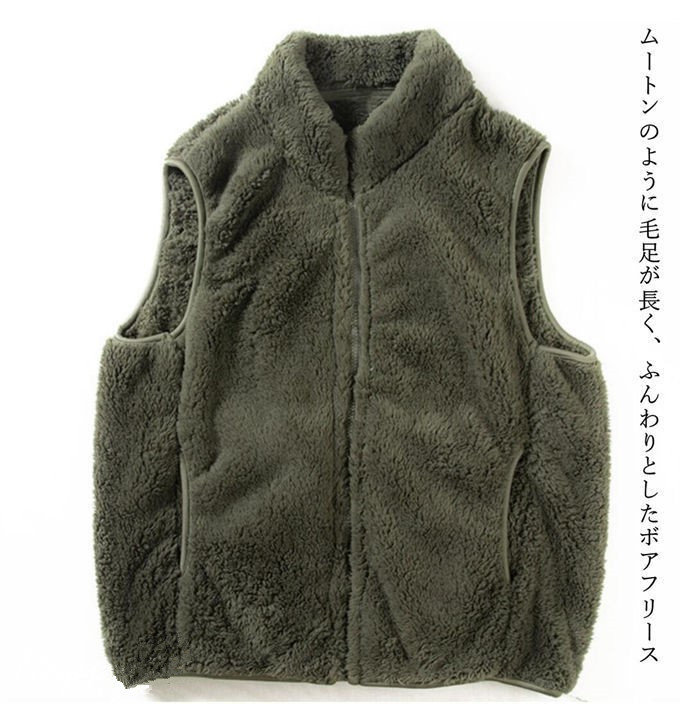 フリース ベスト ボア メンズ フリー トップス ベスト ジレ 早い者勝ち ブラウン ブラック ネイビー 生成り カーキ色 グレー S M L XL 2XL