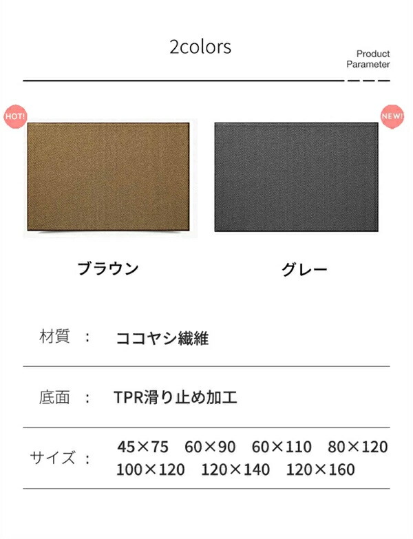 玄関 マット 麻ココヤシマット 玄関マ ブラウン グレー 45*75cm 60*90cm 60*110cm 80*120cm