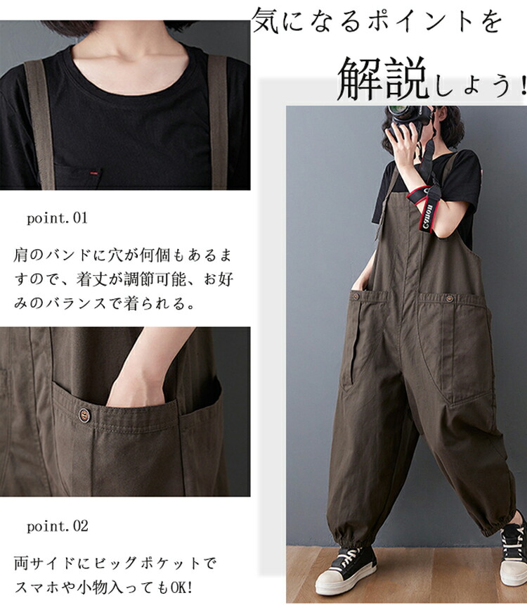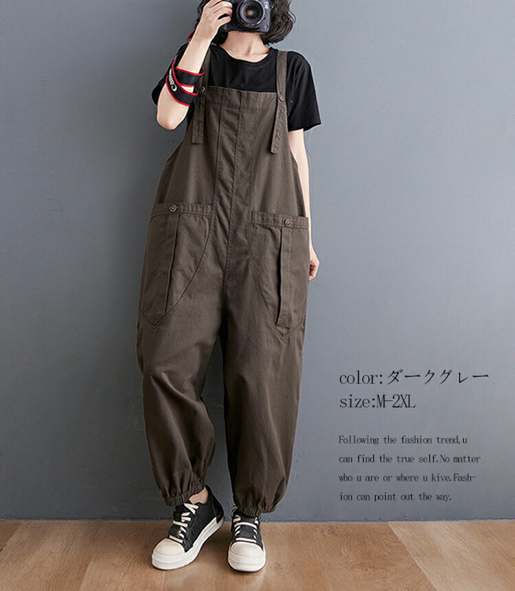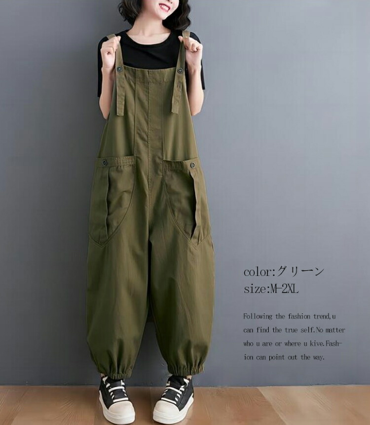 サロペット 大きいサイズ オーバーオー レディースファッション 新作 M L XL 2XL COLOR1ダークグレー COLOR2イエロー COLOR3グリーン COLOR4ブルー