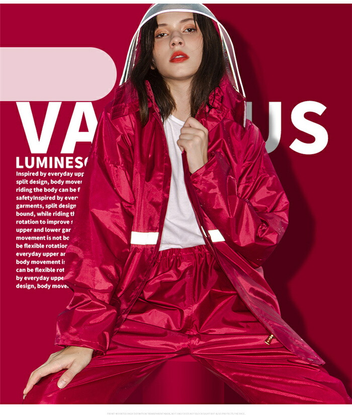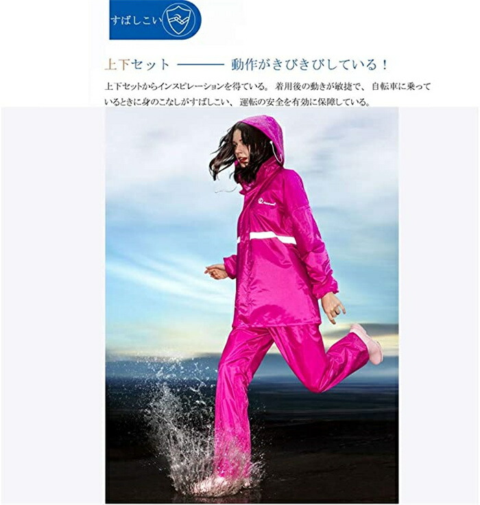 レインコート 自転車 上下 ストレッチ レディースファッション 豊富 ピンク バラ色 レッド ブルー ネイビー グレー S M L XL 2XL 3XL 4XL