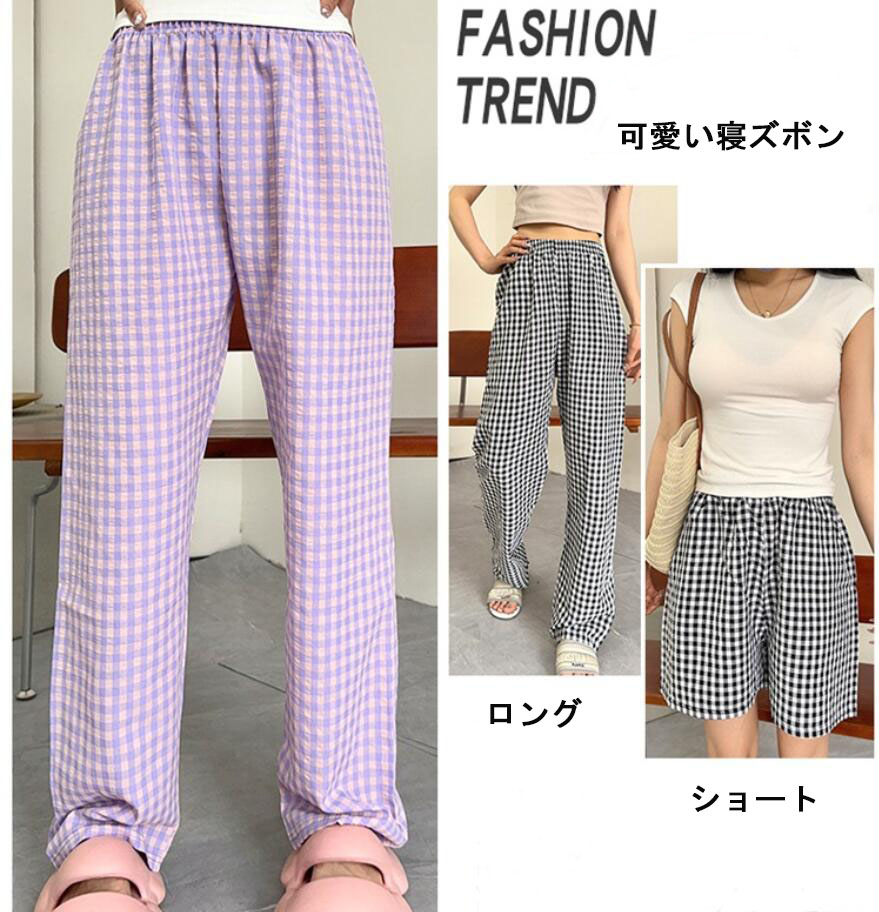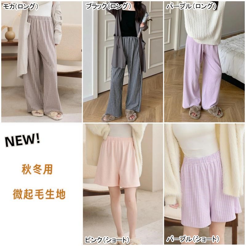 パンツ ギンガムチェック 春 夏 ルー レディース ナイトウェア ルームウェア ルームウェア ボトムス 早い者勝ち グリーン オレンジ パープル ブラック ピンク レッド グレー ネイビー ブラウン ブラック微起毛 パープル微起毛 モカ微起毛 ピンク微起毛 M L