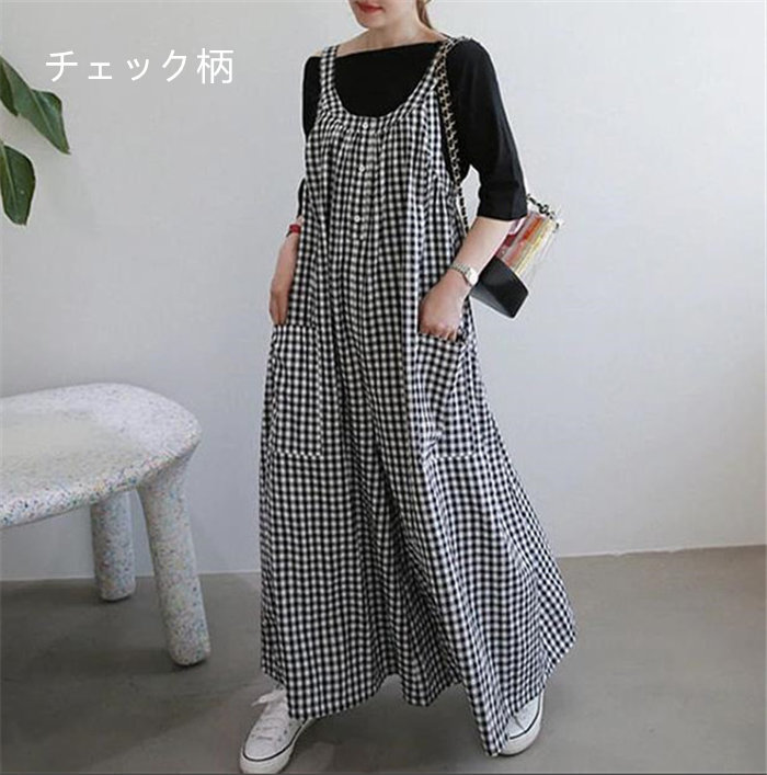 オールインワン サロペット レディース レディースファッション 続々入荷中 ブラック ブルー チェック柄 M L XL