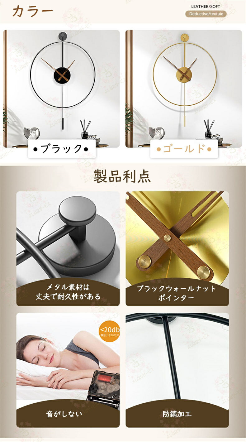 振り子時計 静音 軽量 掛時計 壁掛け ゴールド ブラック 直径50cm*高さ70cm 直径60cm*高さ80cm