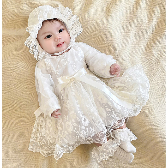 セレモニードレス &帽子セット ベビー ベビー ベビー服 ファッション ベビードレス セレモニードレス 早い者勝ち (3M)新生児-2ヶ月 (6M)3-6ヶ月