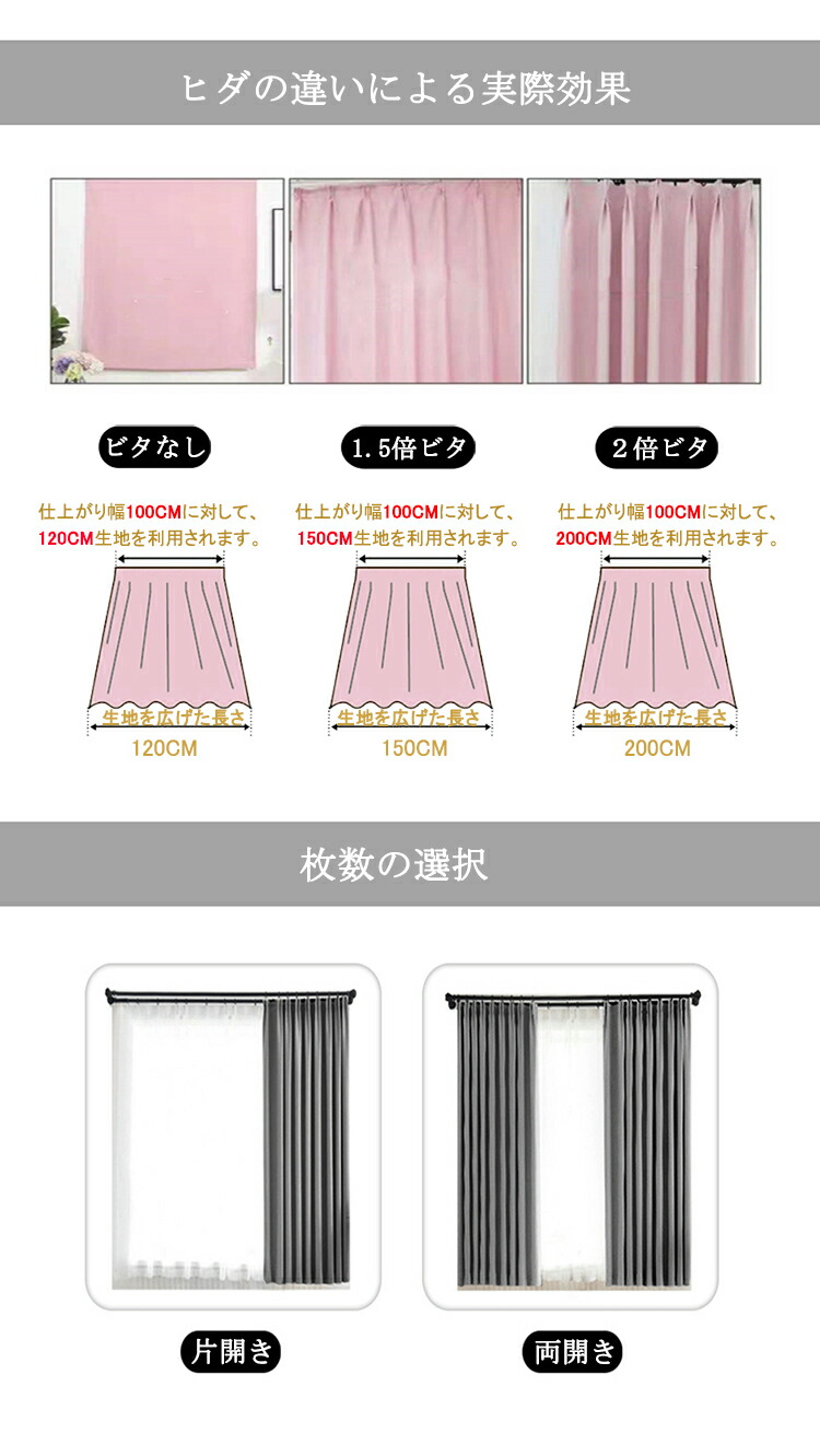 カーテン 幅80~幅350cm 丈65 ヒダなし 1.5倍ヒダ 1.8倍ヒダ 2倍ヒダ 2.5倍ヒダ アジャスターフック 四爪フック リングフック