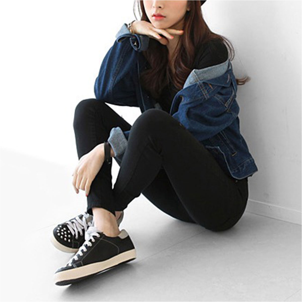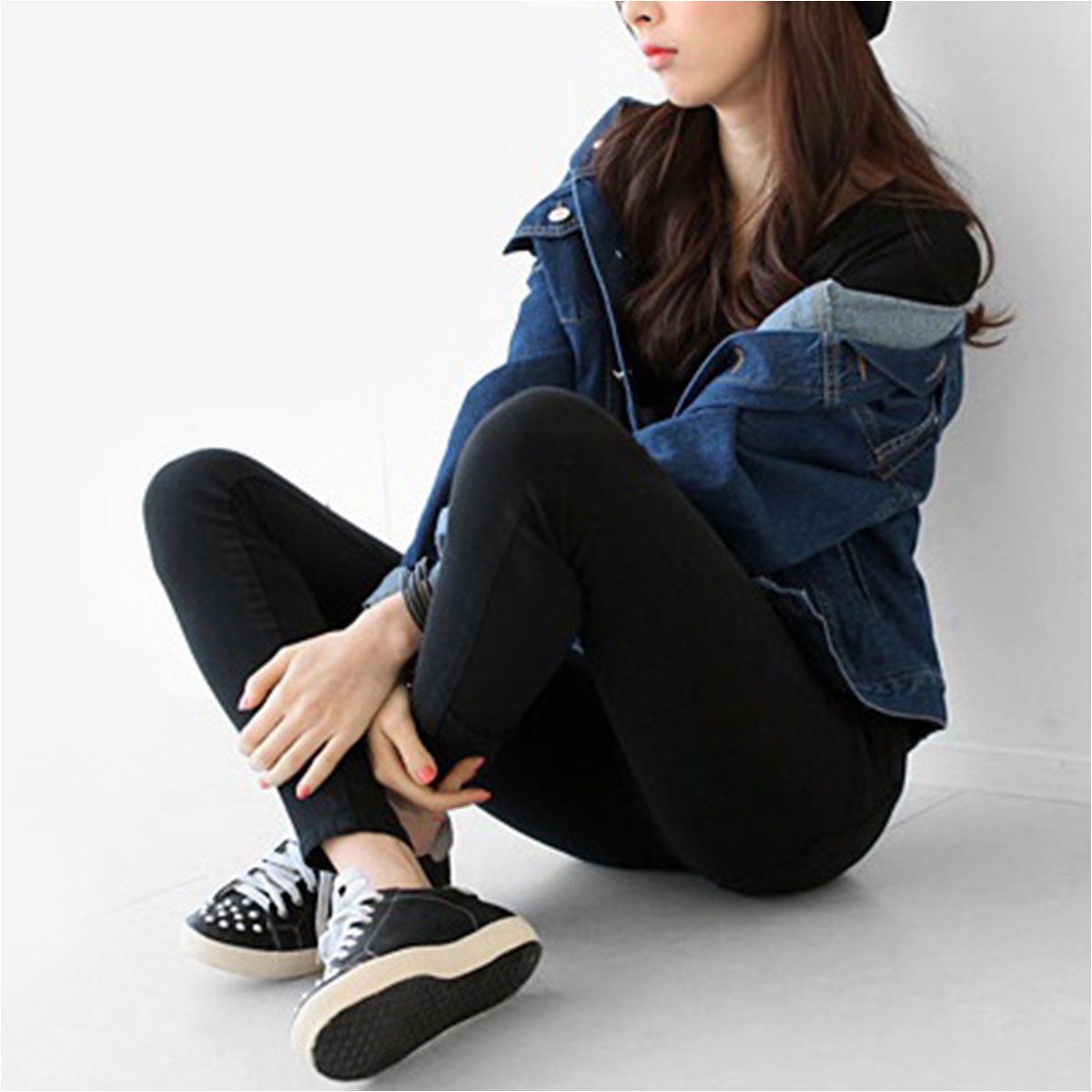 デニムパンツ ビジュー付き
