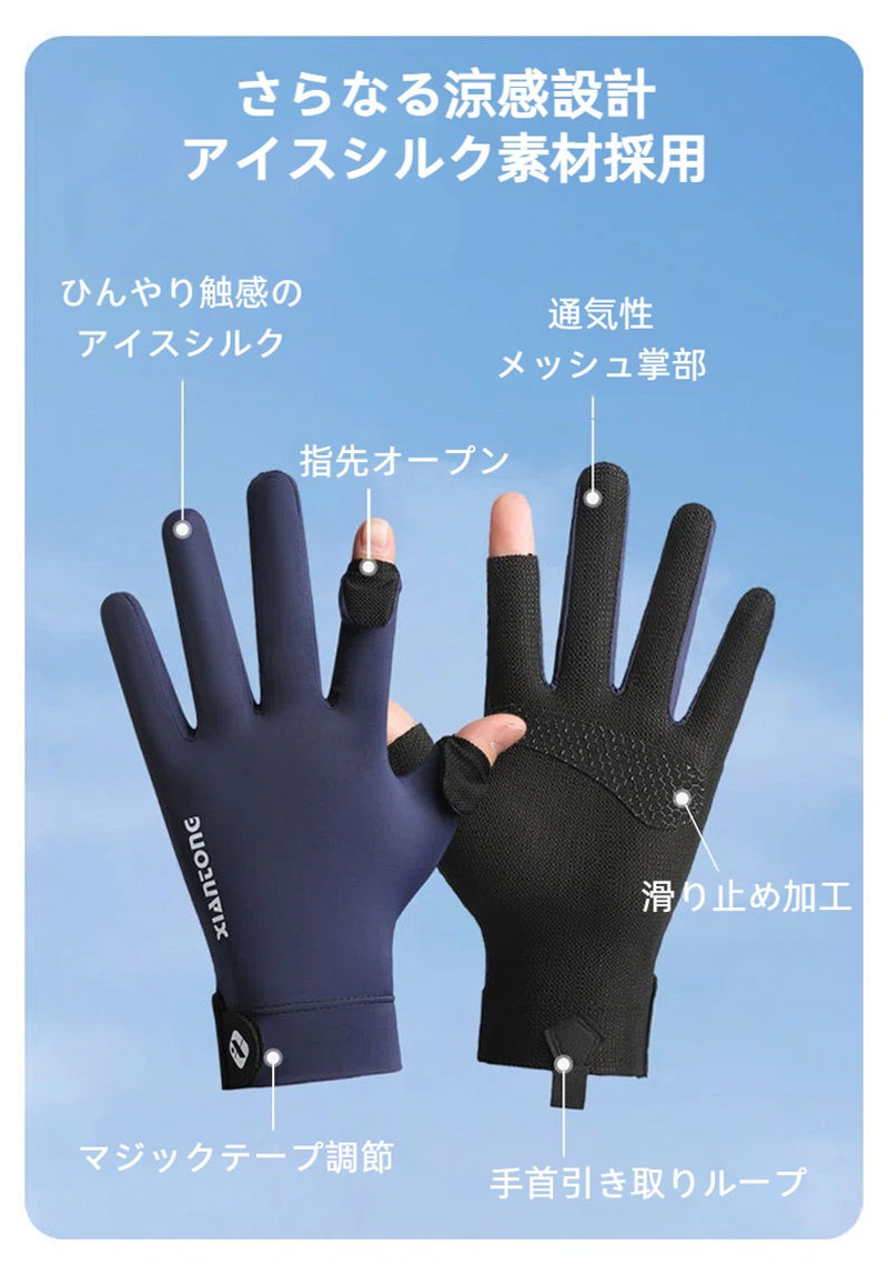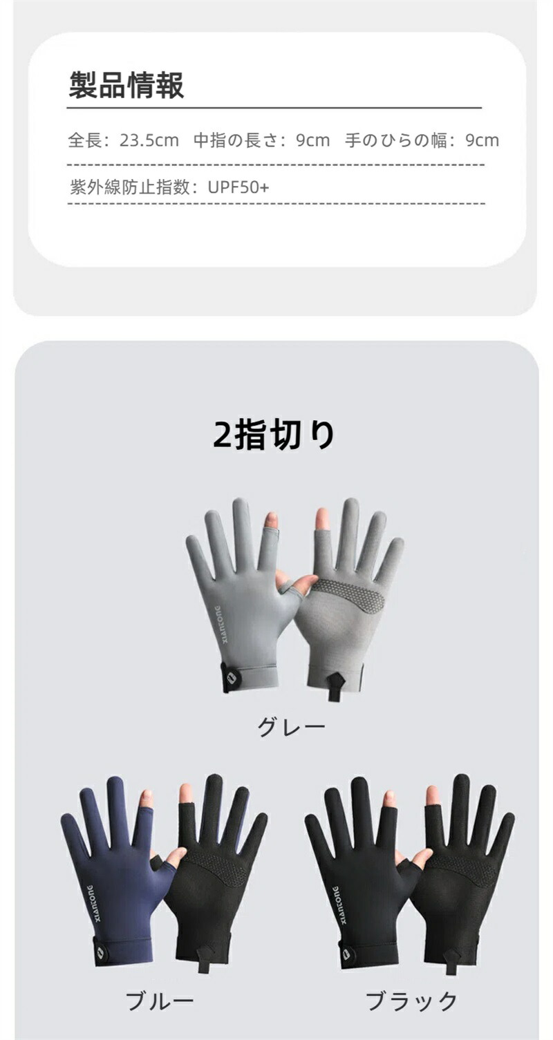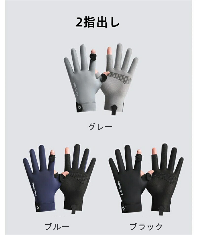 手袋 メンズ 夏用 グローブ uvカッ 手袋 アームウォーマー メンズ手袋 豊富 2指出し 2指切り 半指 ブルー ブラック グレー ブラックグレー