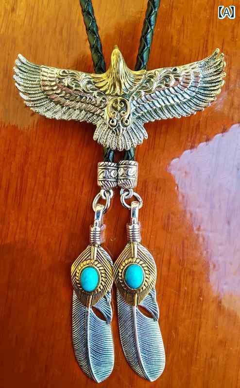 ループタイ メンズ レディース ボロタイ アクセサリー ネックレス ネクタイ代わり 結婚式 旅行 アメリカン カジュアル おしゃれ レトロ ターコイズ イーグル 羽根 金