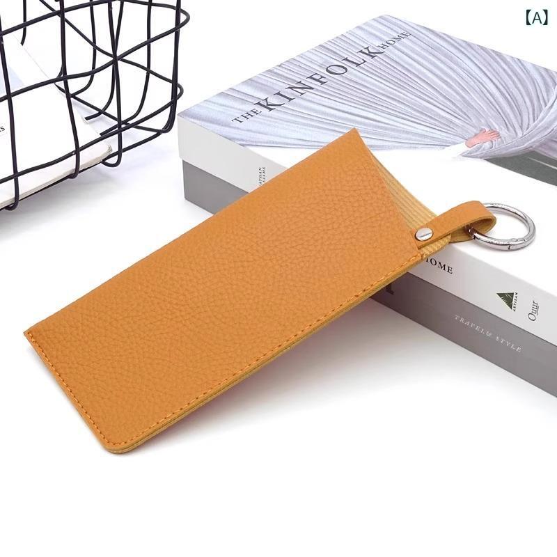 メガネケース ハンギングポーチ 合成皮革 携帯用 サングラス収納 キーホルダー付き シンプルデザイン 夏用 ブラック グリーン ベージュ オレンジ