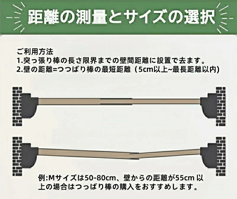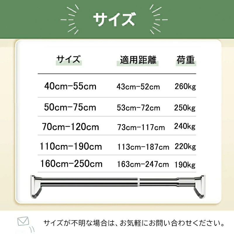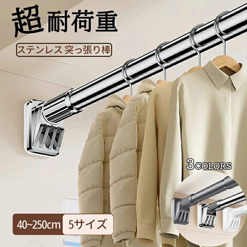 突っ張り棒 ステンレス 強力 つっぱり シルバー ホワイト ブラック 40-55cm 50-75cm 70-120cm 110-190cm 160-250cm