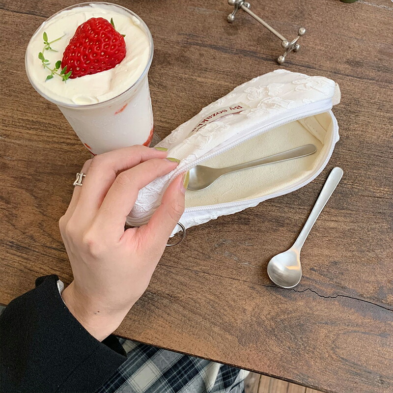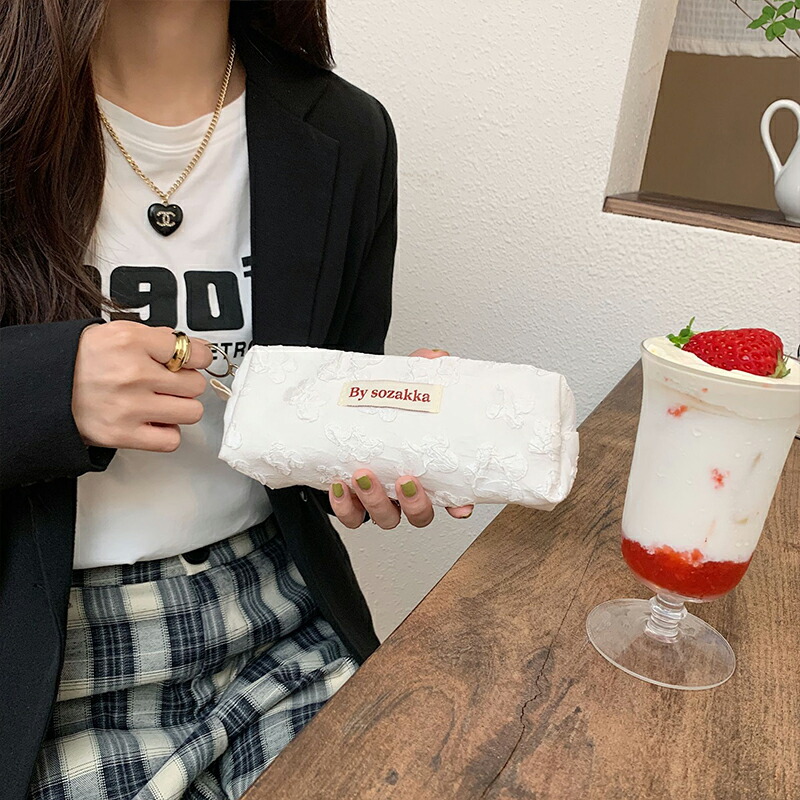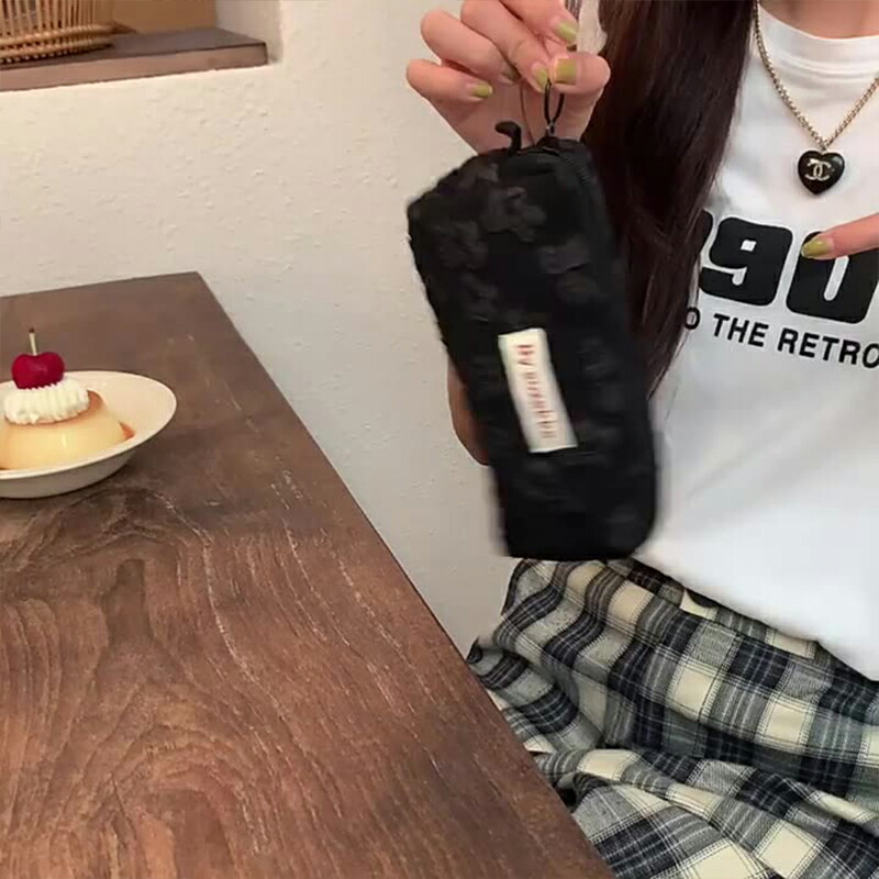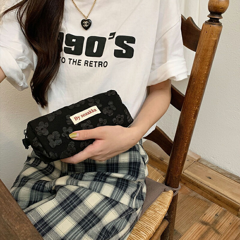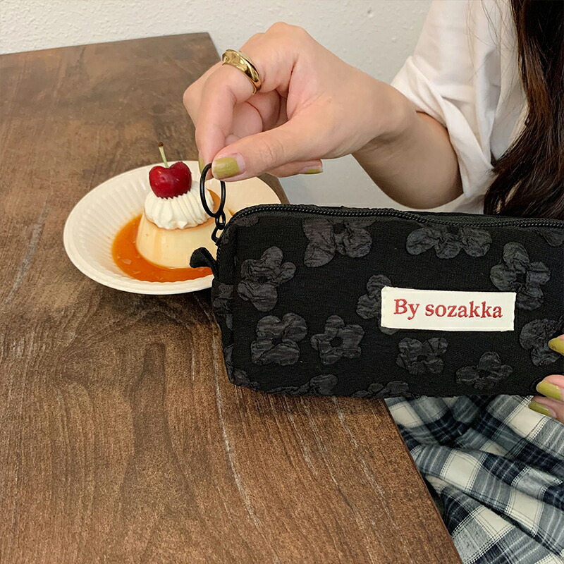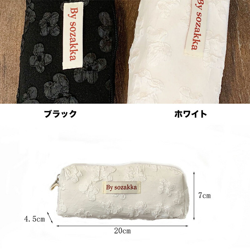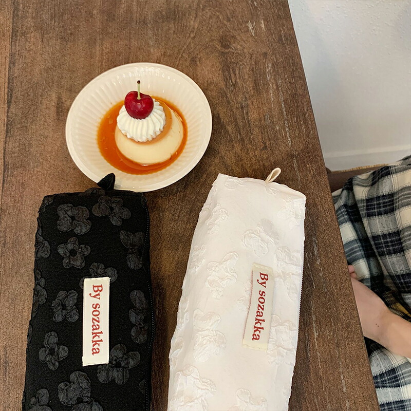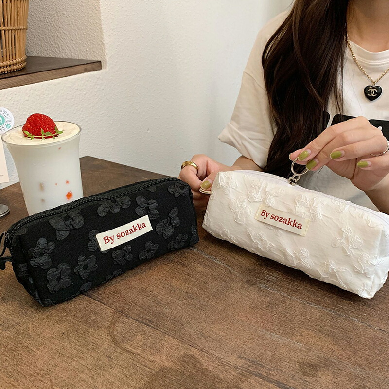 ふわふわ小花柄 韓国 ペンケース レト 日用品雑貨 文房具 手芸 人気 ブラック ホワイト