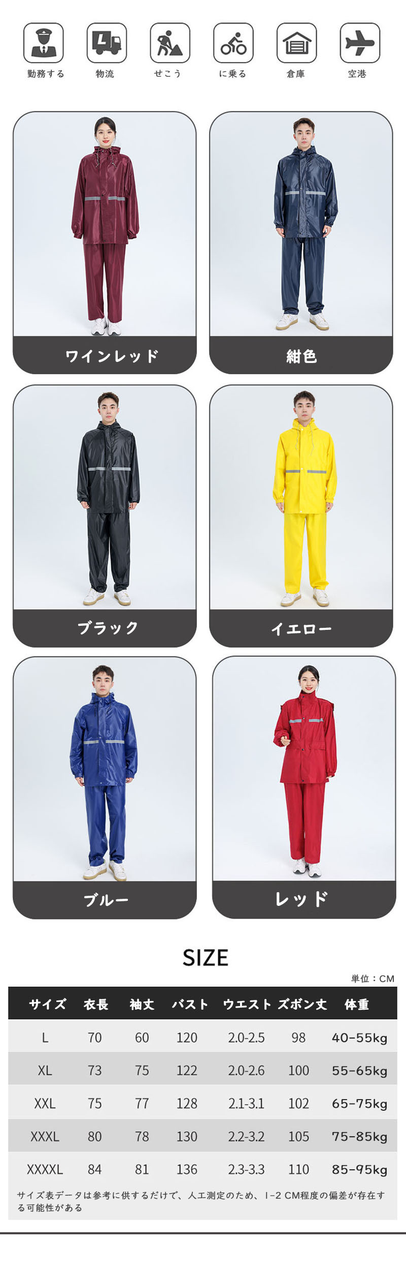 レインウェア 上下セット レインスーツ アウトドア ウェア レインウェア レインウェア上下セット 人気 ブラック 紺色 ブルー レッド ワインレッド イエロー L XL XXL XXXL XXXXL