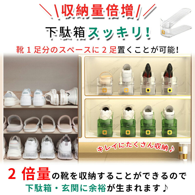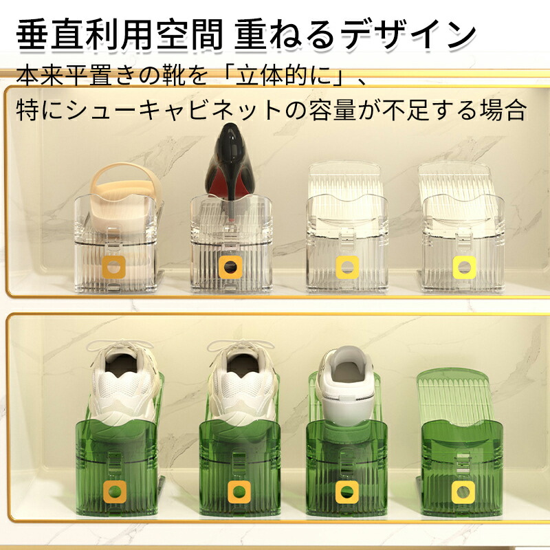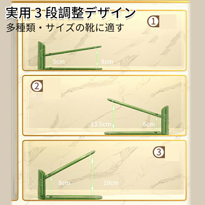 多層調整可能な靴棚折り畳み靴モップ節約 靴ケア用品 アクセサリ ストレッチャー シューキーパー 通販 グリーン 透明