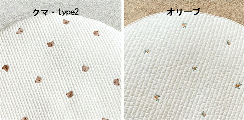 ベビーマット 円形 ベビーラウンドハイ クマtype2 オリーブ チューリップ リス ウサギ クマtype1