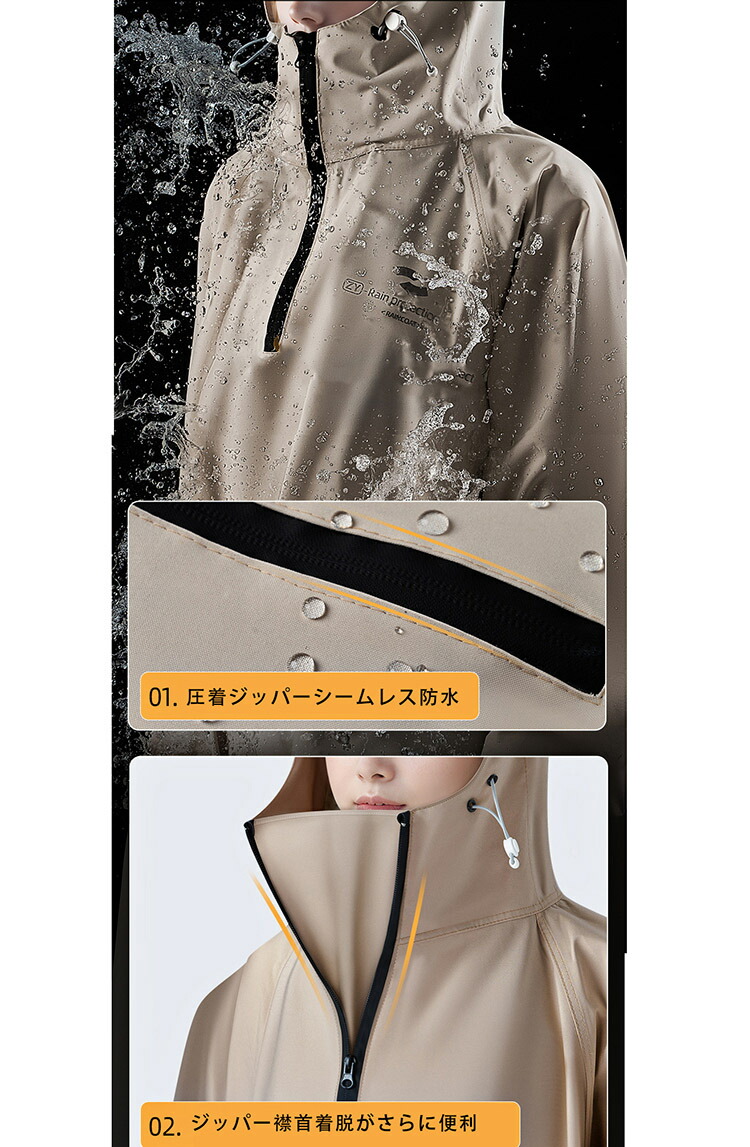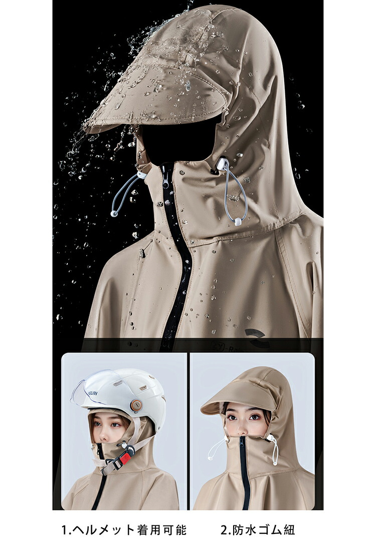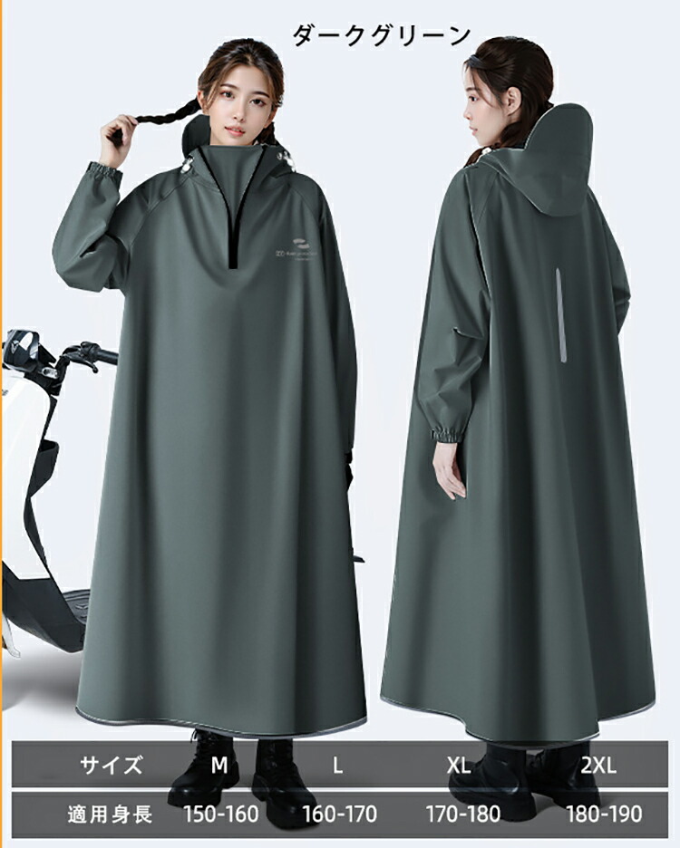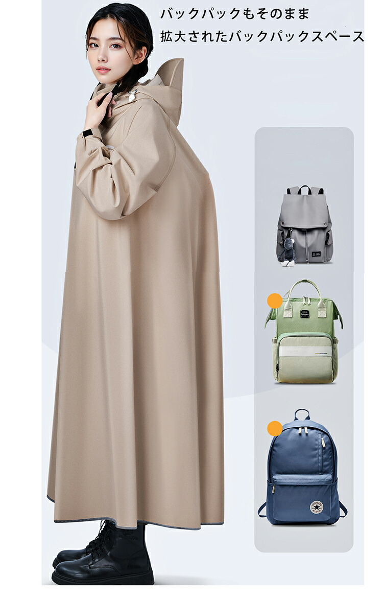 レインコート 自転車 通学 通勤 リュ スポーツ アウトドア 新登場! M L XL 2XL ライトブラウン ダークグリーン ホワイト ブラック