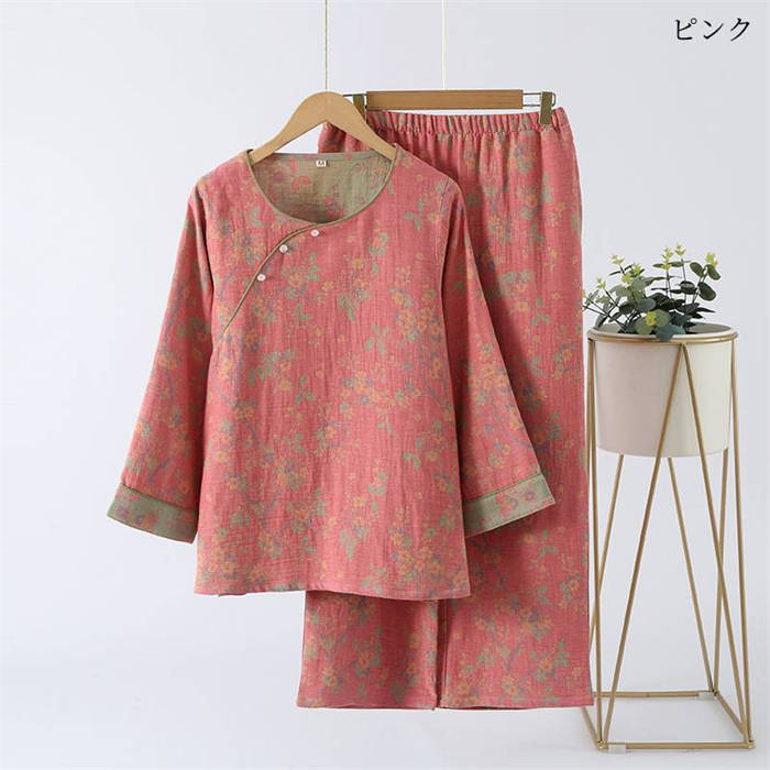 綿100% パジャマ 上下セット レデ レディース ナイトウェア ルームウェア ルームウェア 上下セット 通販 グリーン パープル ピンク M L XL 2XL