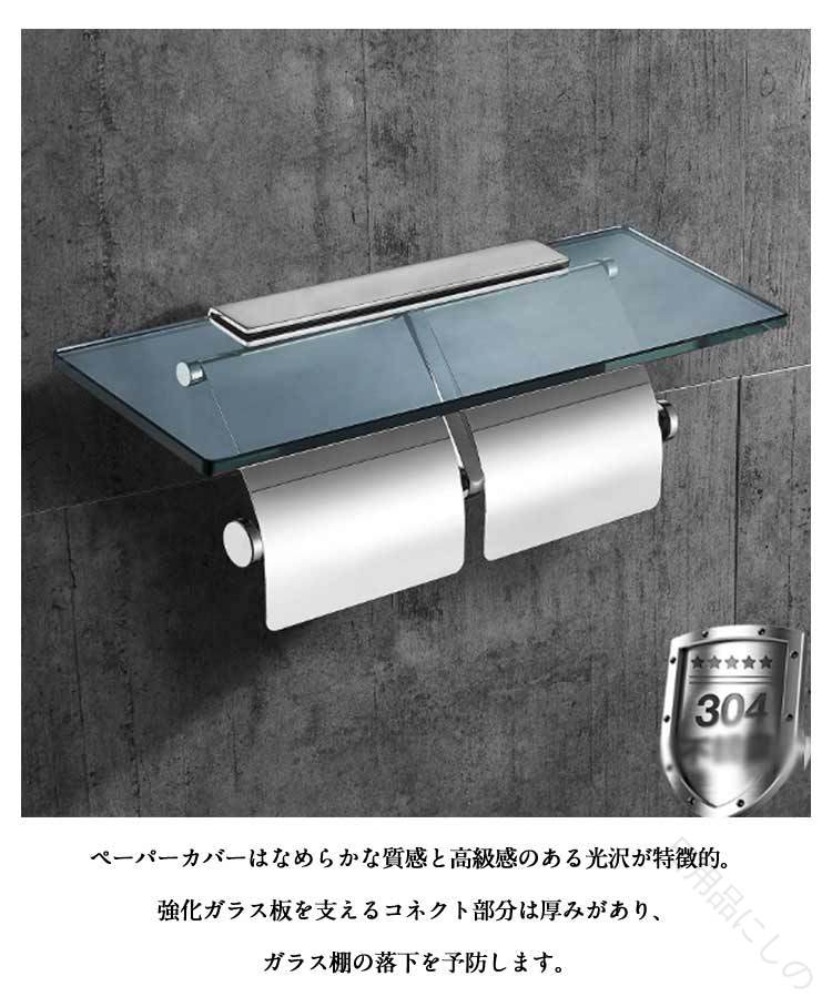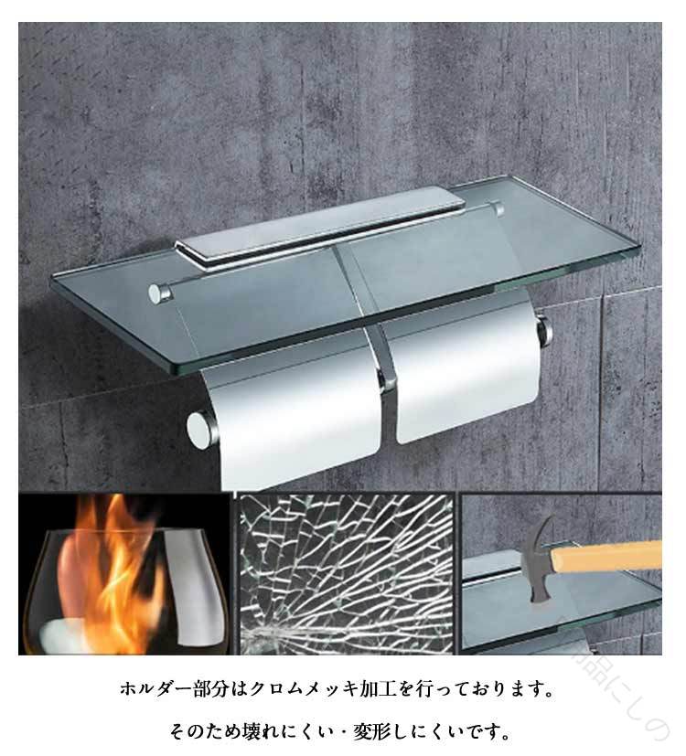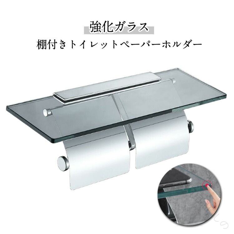 トイレットペーパー ホルダー シングル 1連 2連 タイプ シルバー ステンレス 透明 強化ガラス ガラス棚 バータイプ スマホテーブル おしゃれ かわいい 北欧風 高耐久 賃貸 おすすめ 北欧