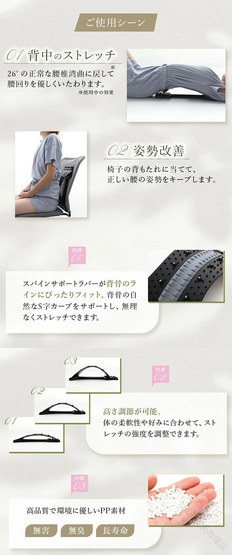 背中 ストレッチ 腰 背筋 伸ばし 器 ブルー グレー ピンク パープル