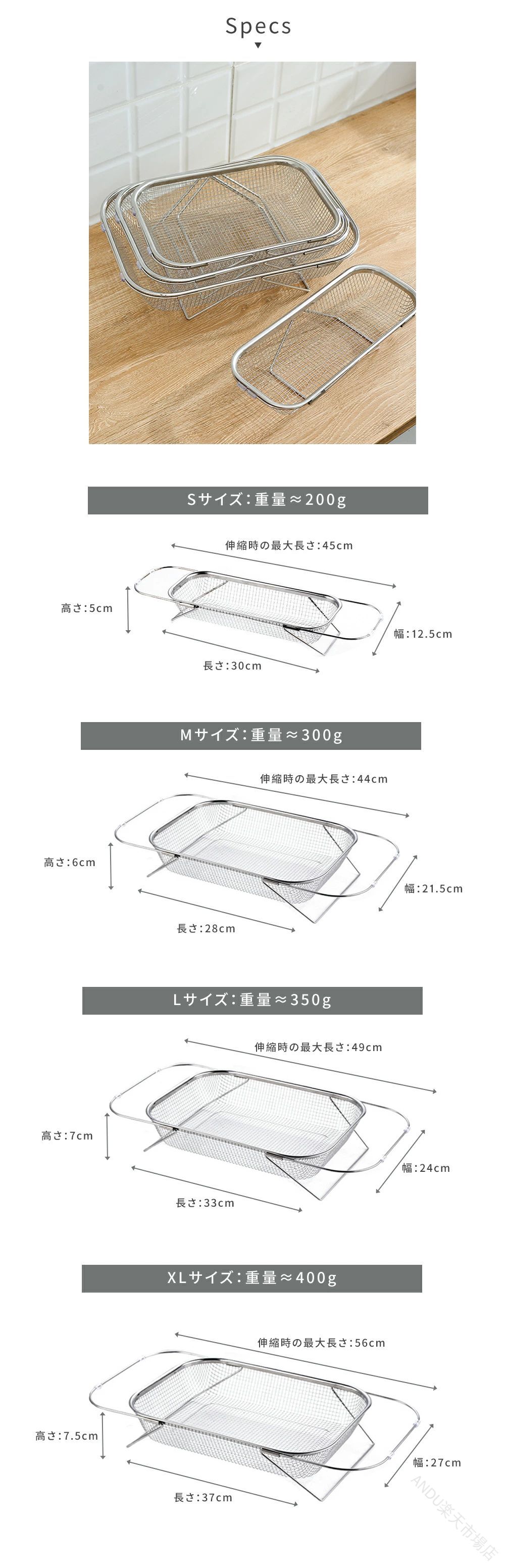 水切りかご ステンレス 伸縮 水切りラ S M L XL