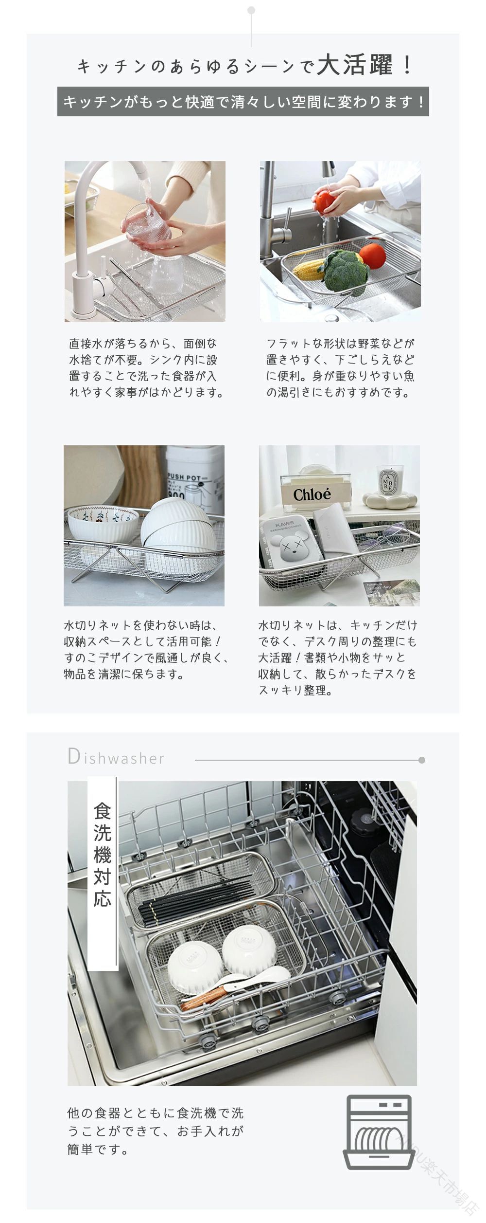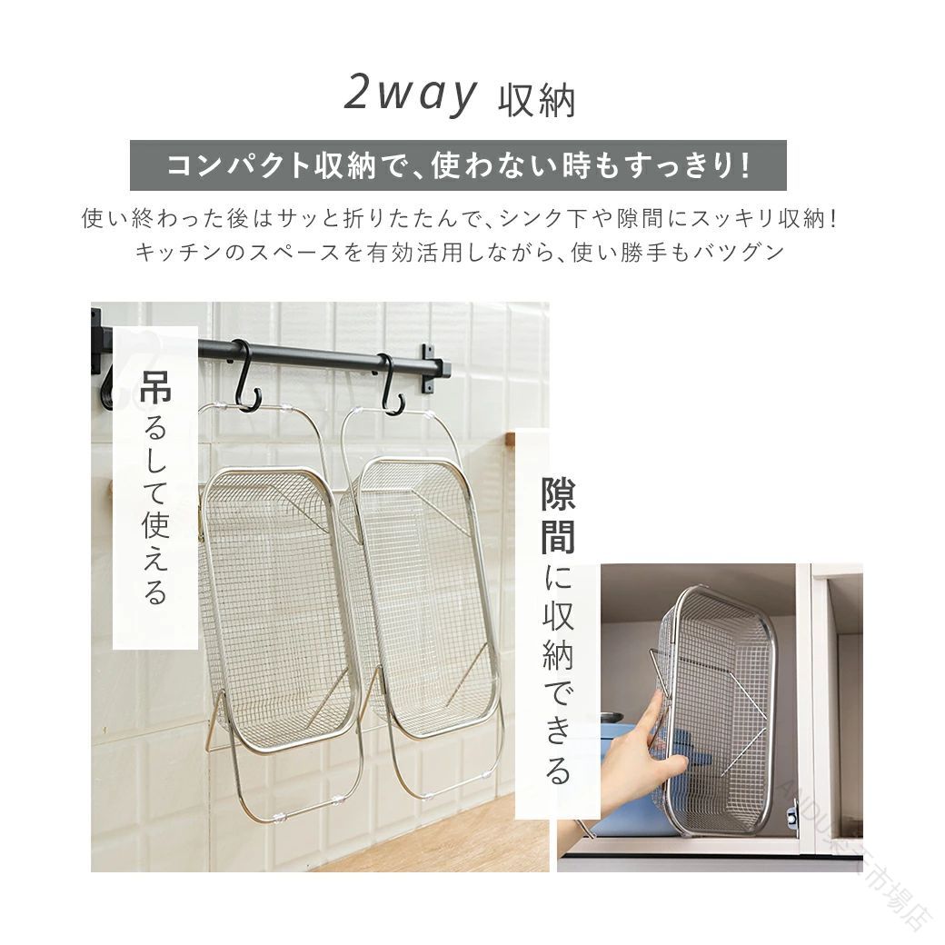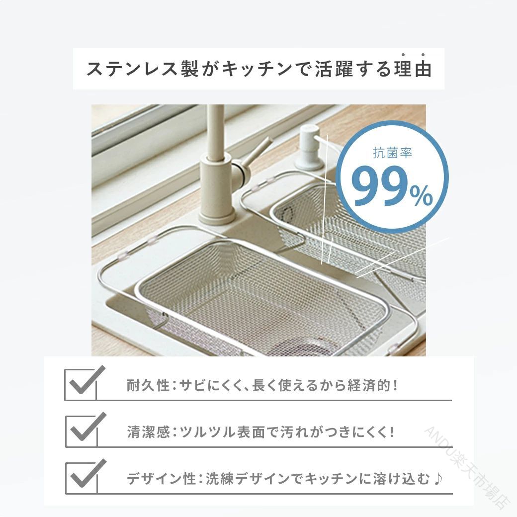 .ステンレス製の伸縮 水切りかご は シンク上 に設置可能で 横置き と 縦置き 両方対応の 大容量 ラック です。食洗機対応 で 水が流れる 設計により 衛生的 に洗い物を乾かせます。キッチンの省スペース化 にも最適な 水切りラック です。。