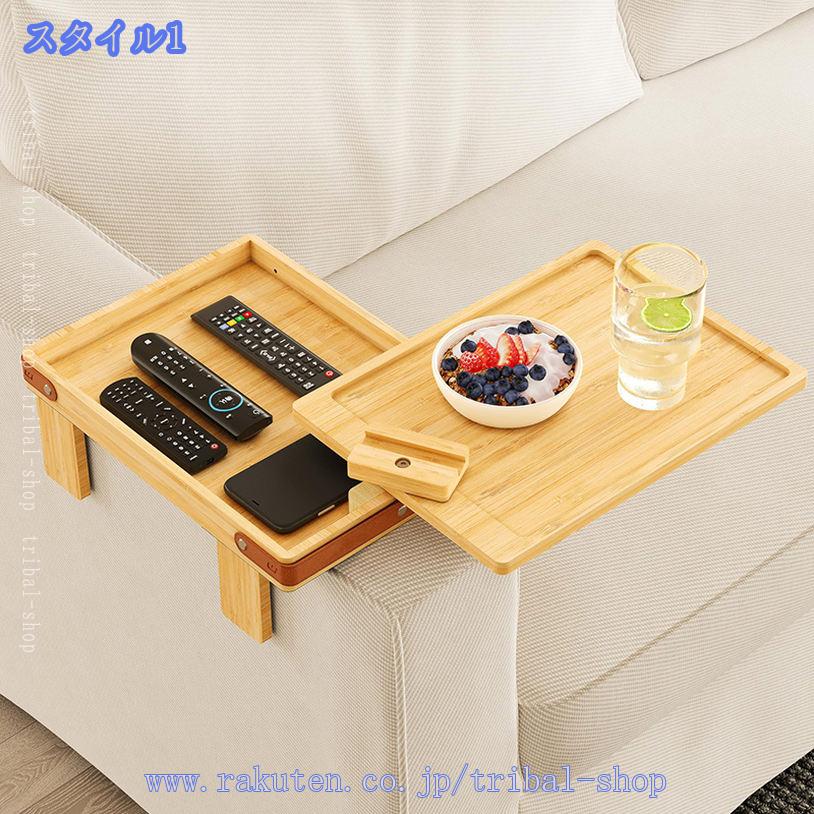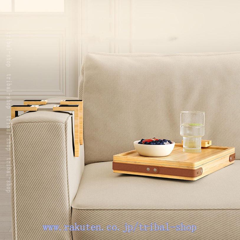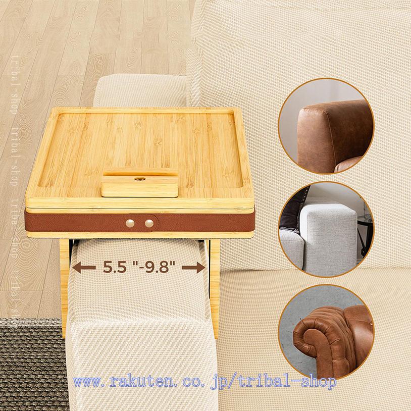 サイドテーブル 木製 ソファアームレスト テーブル ソファー肘掛用 ドリンクホルダー 小物 整理 収納 携帯電話 料理 メガネ ソファー 竹素材 折り畳み式 ミニテーブル カウチコースター 落下防止
