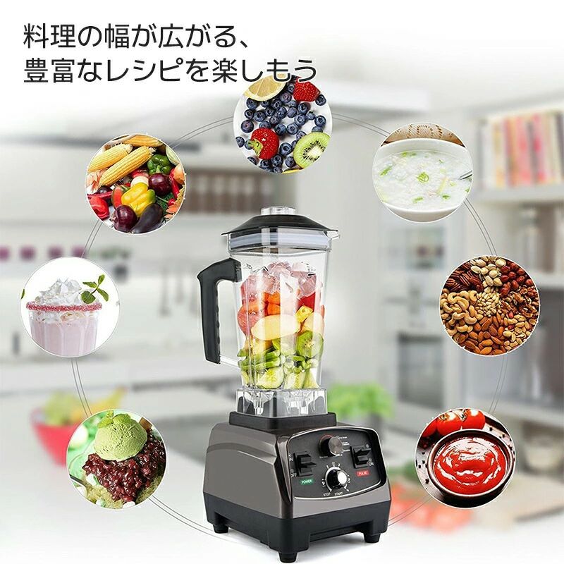 ミキサー 業務用ミキサー スムージー ブレンダー 多機能 2200W 2L 大容量 48000RPM 高出力 ブ タイマー付