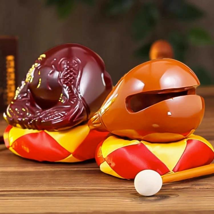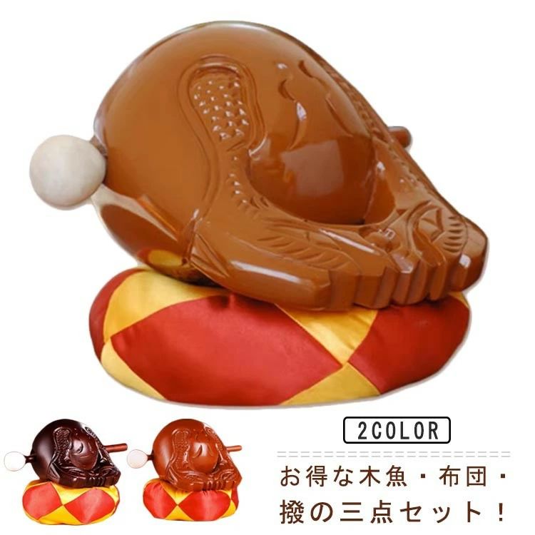 選べる2色 木魚 仏具 座布団 ばち 黄 暗赤 3.5寸 4寸 5寸 6寸