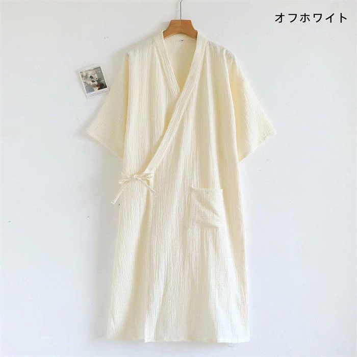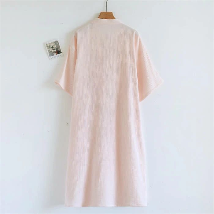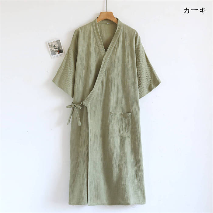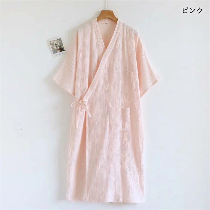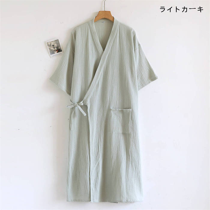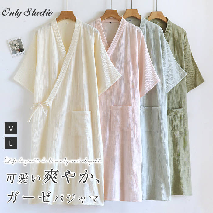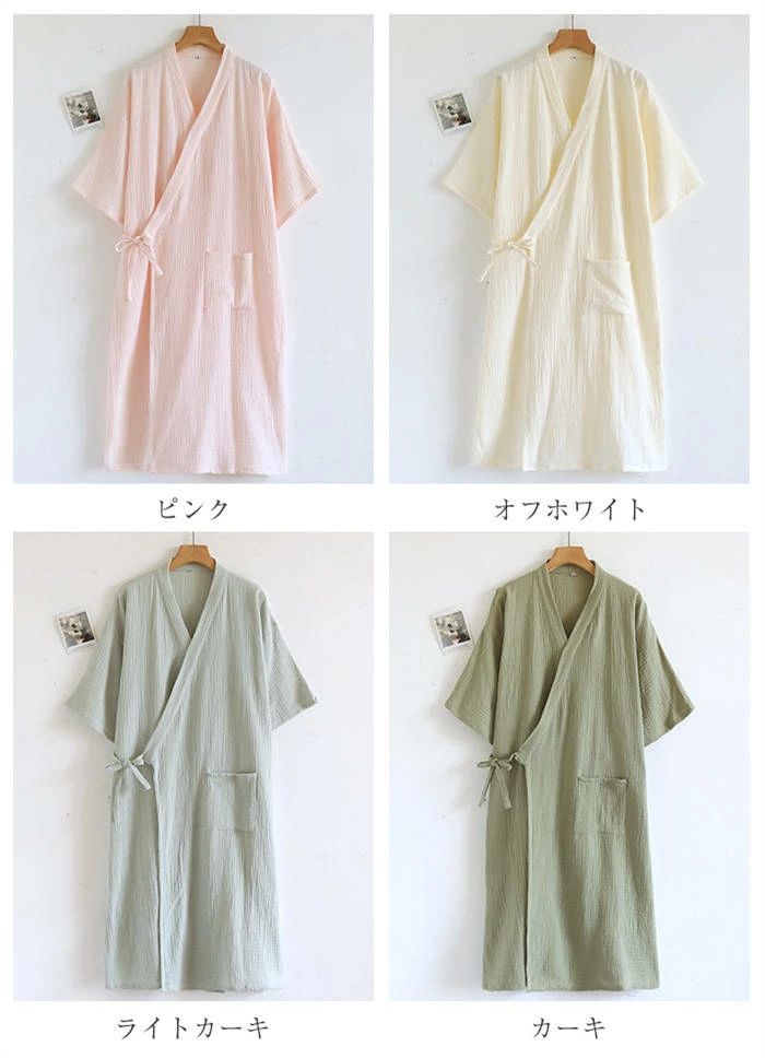 100%綿 ルームウエア ガーゼワンピ ピンク オフホワイト ライトカーキ カーキ M L