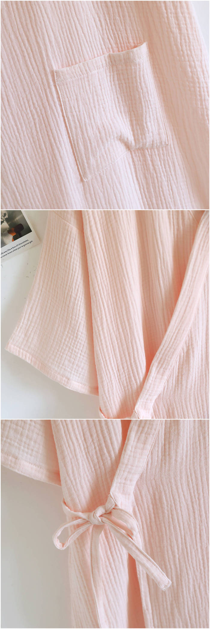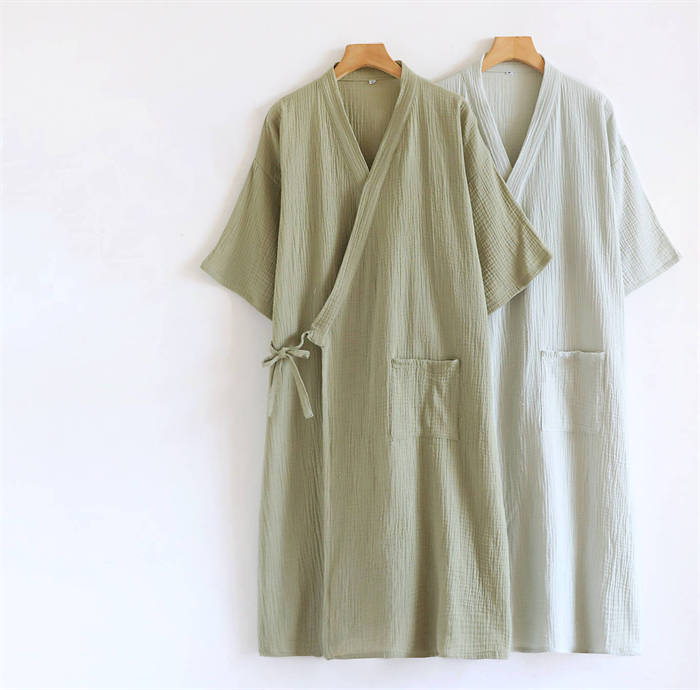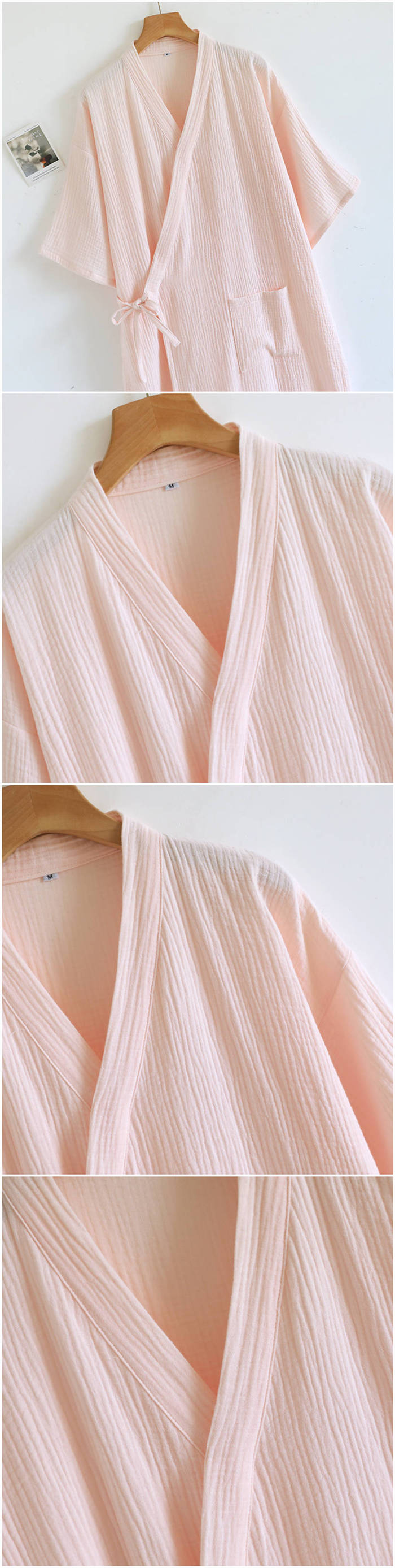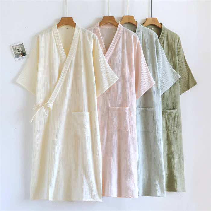 100%綿 ルームウエア ガーゼワンピ ピンク オフホワイト ライトカーキ カーキ M L